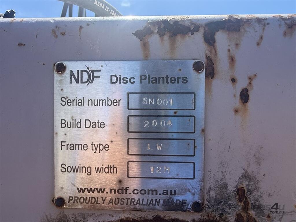 2004 NDF 12m Disc Planter. Only done 1000ha, new discs, new disc bearings, new press wheels and guages, new wheel bearings, new updated seed boots. Located Wee Waa NSW.