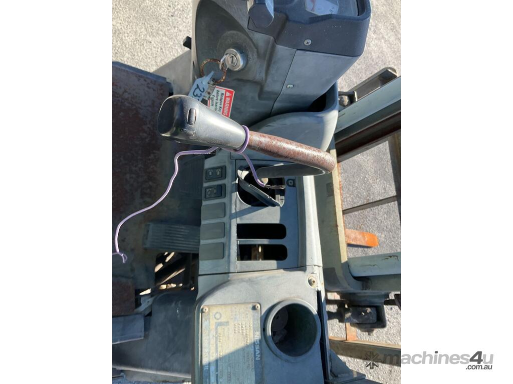 CP: CIRCA 2004,Nissan,L01A15W,Forklift (Container Mast),4 Cyl,Petrol & LPG (Dual),Odometer not visible,16798 (Hrs. Showing on Hour meter),Colour: Grey,Unregistered,Serial No: L01-001068,Sold with No Plates,WOVR Status: WOVR N/A,Incident Type: Malicious,Key No: 233E