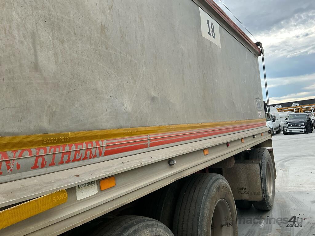 CP: 06/2004,Northern Truck & Trailers,NTT3DA,Tri Axle Aluminium Tipping Dog Trailer,Hubometer not visible,Colour: Silver,Rego. No: NP(YV66LK), Unregistered VIC,VIN: 6W9NTT3DA42000102,Sold with No Plates,WOVR Status: WOVR N/A,Incident Type: Impact