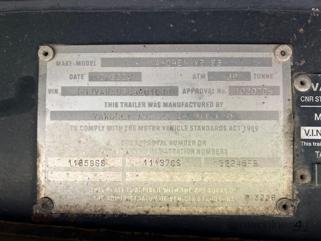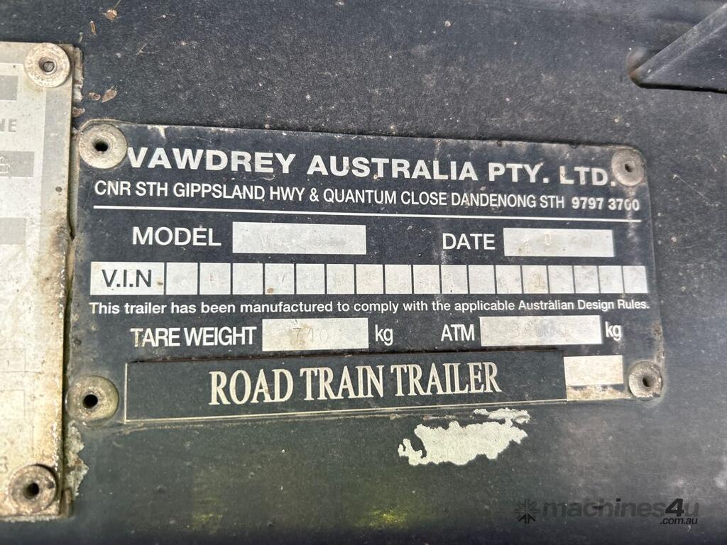 CP: 10/2004,Vawdrey,VB S3,Curtainside Drop Deck A Trailer,345006 (Kms. Showing on Hubometer),Colour: White,Rego. No: NP(YS81AS), Unregistered NAT,VIN: 6HJVAWAUS4SE01042,Sold with No Plates