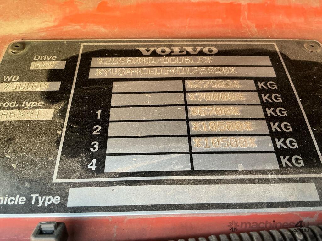CP: 06/2004,Volvo,FH12 460,Vacuum Truck,Manual,Airbag,6 Cyl,Diesel Turbo,8 Gears,1459524 (Kms. Showing on Odometer),29615 (Hrs. Showing on Hour meter),Colour: White,Rego. No: 1DFA821 WA,VIN: YV5A4CED54D125590,Key No: 30,Length: 9.4 m,GVM: 27500,GCM: 70000,Sold with No Plates,Key No: 30