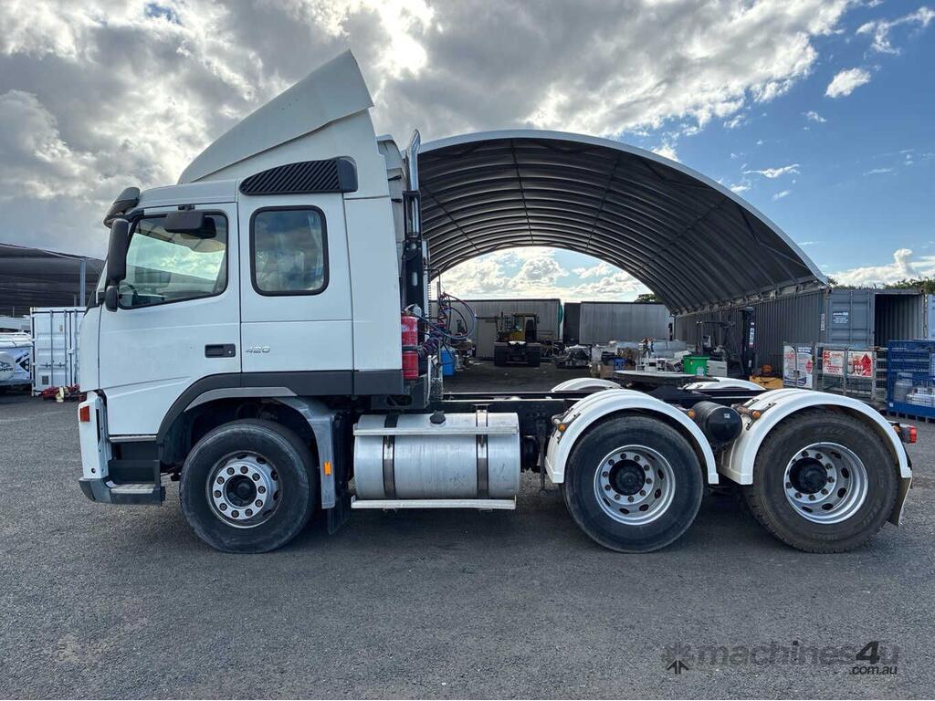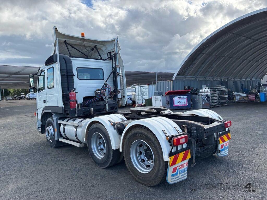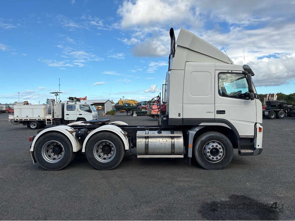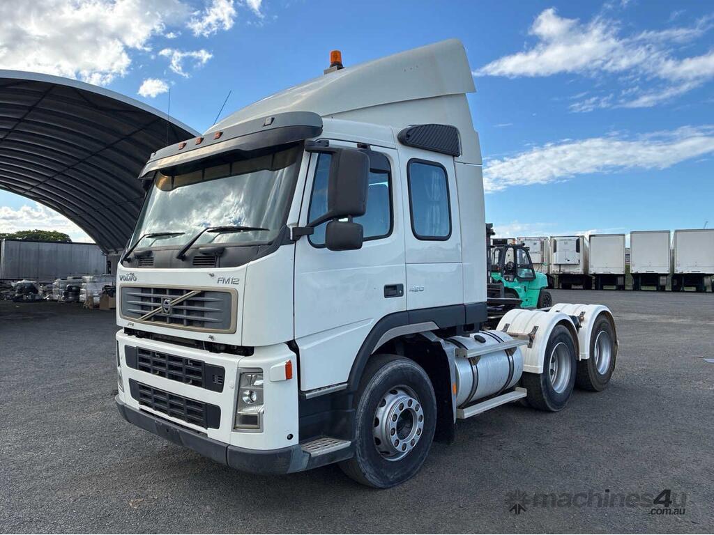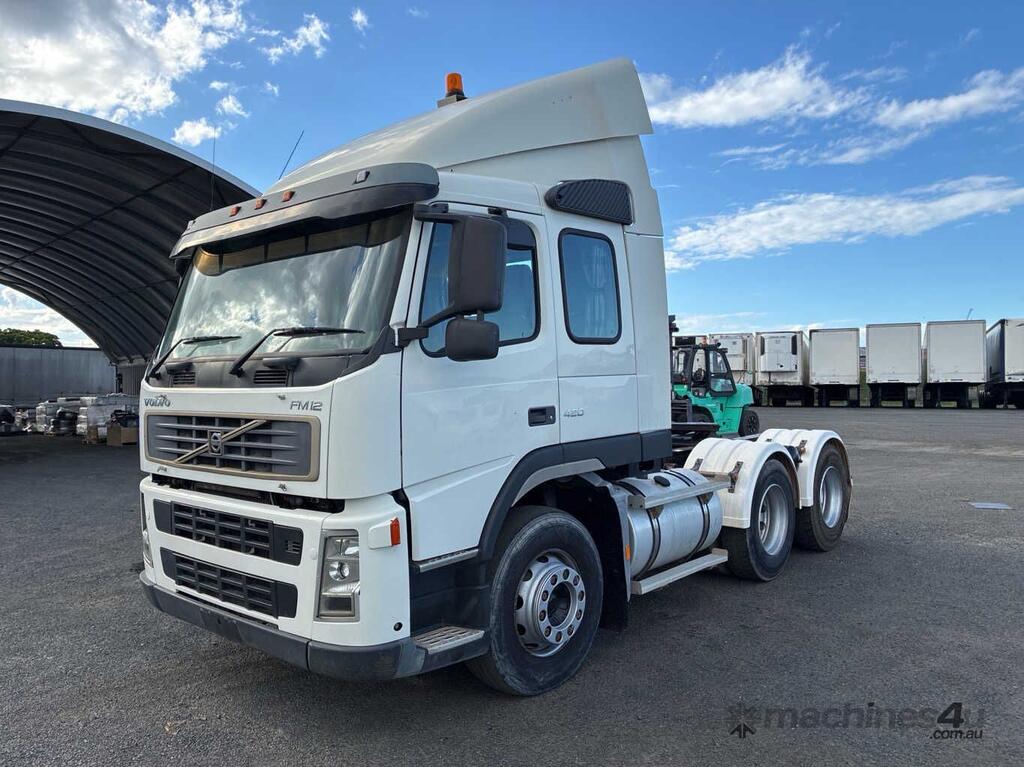 CP: 02/2004,Volvo,FM12,Prime Mover,Manual,Airbag,6 Cyl,Diesel,641087 (Kms. Showing on Odometer),21357 (Hrs. Showing on Hour meter),Colour: White,Unregistered,VIN: YV5J4CFD84D125193,Key No: 407,GVM: 27500,GCM: 70000,Sold with No Plates,Key No: 407