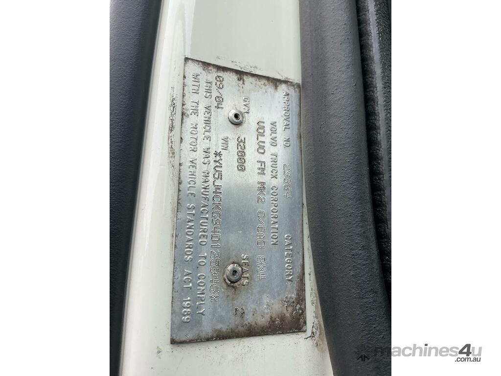 CP: 09/2004,Volvo,FM380,Hook Bin Truck,Manual,Leaf Spring Suspension,6 Cyl,Diesel,1031985 (Kms. Showing on Odometer),42449 (Hrs. Showing on Hour meter),Colour: White,Unregistered,VIN: YV5J4CKG94D125946,Key No: 322,GVM: 32000,GCM: 50000,Sold with No Plates,Key No: 322