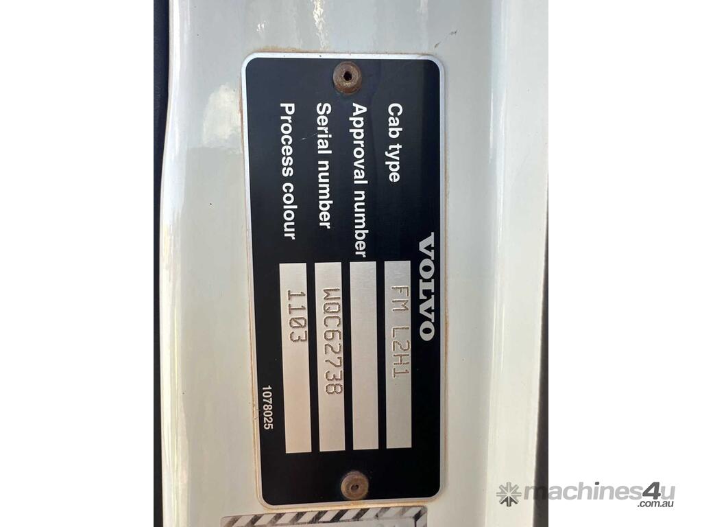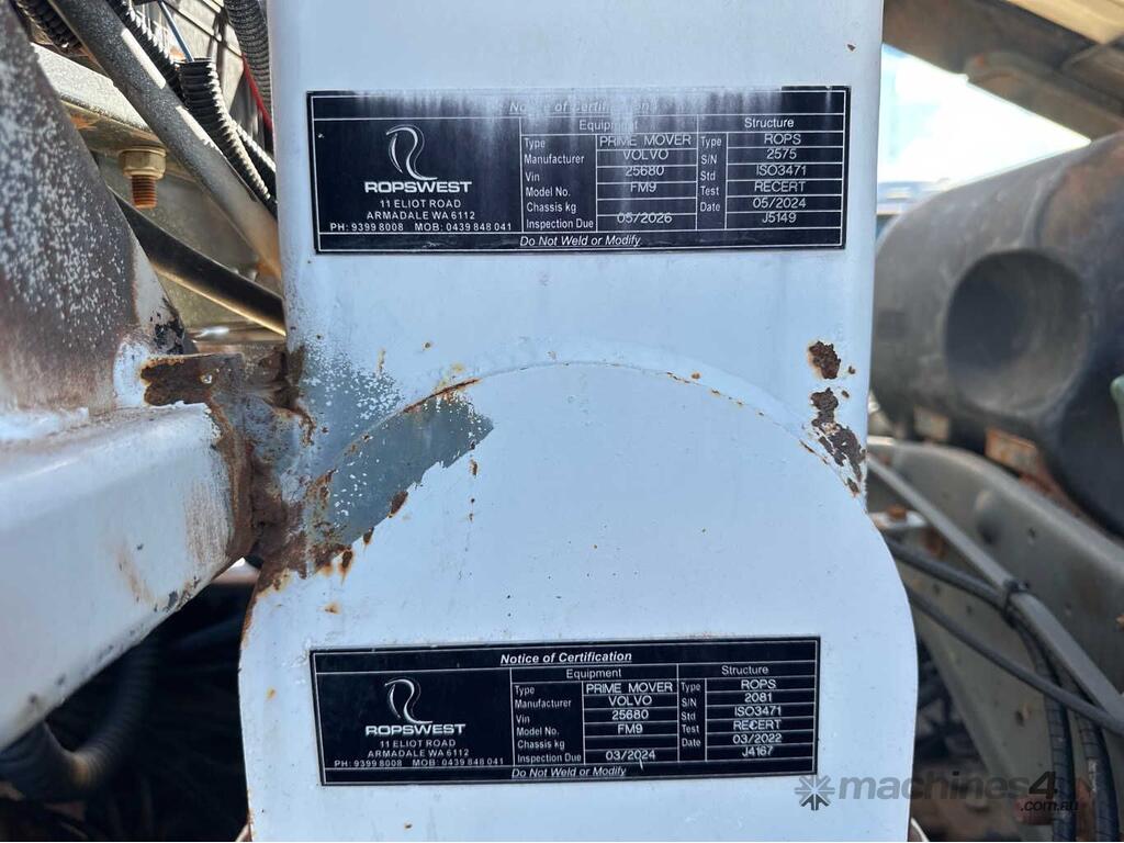 CP: 07/2004,Volvo,FM9,Prime Mover Day Cab,Manual,Air Bag,Engine #: D9013714,D9A,9.4 Ltr,6 Cyl,Diesel Turbo,14 Gears,277906 (Kms. Showing on Odometer),11118 (Hrs. Showing on Hour meter),Colour: White,Rego. No: 1IEK782 WA,Rego expiry: 21/06/2026,VIN: YV5J4CKD04D125680,Length: 6.8 m,GVM: 27500,GCM: 50000,Plates to All