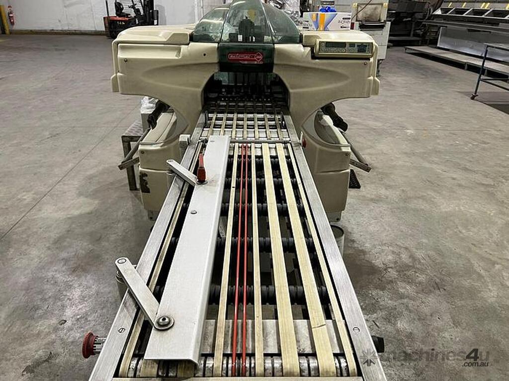 The WALDYSSA AUTOMAC 38 B-215-ZS Flow Wrapper is a high-quality, Swiss-made wrapping machine designed for efficiently wrapping trays of vegetables. With its inline configuration, this model offers a seamless flow of product from the operator side to the wrapped product exit. Ideal for high-volume packing operations, it features programmable memory, adjustable wrapping speeds, and versatile tray size compatibility.