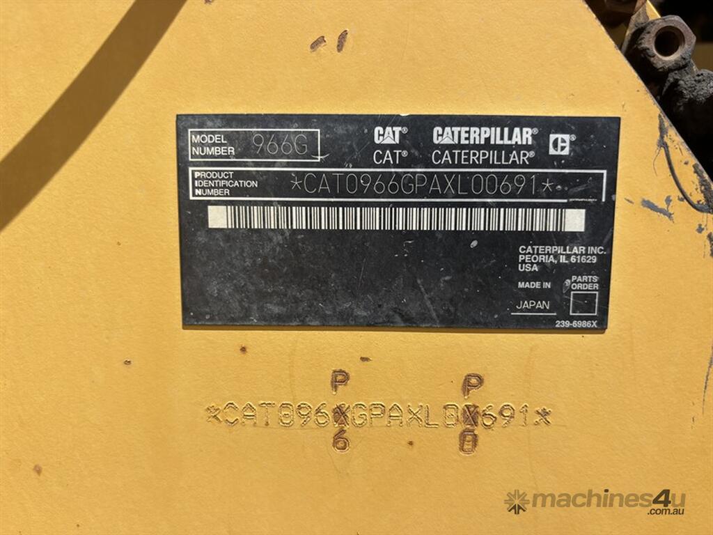 2005 CAT 966G SERIES II WHEEL LOADER, S/N: CAT0966GPAXL00691, E/N: ###, 14,510 HOURS SHOWING, BUYER TO REMOVE FROM SITE WITHIN 4 WEEKS FROM SALE. LOCATION: HALFERTY STREET, EMERALD, QLD 4720. INSPECTIONS & COLLECTIONS: MONDAY TO FRIDAY, 8AM TO 4PM. ENQUIRIES: JOHN MCDOUGALL ON OR JOHNEMERALDAUCTIONCENTRE