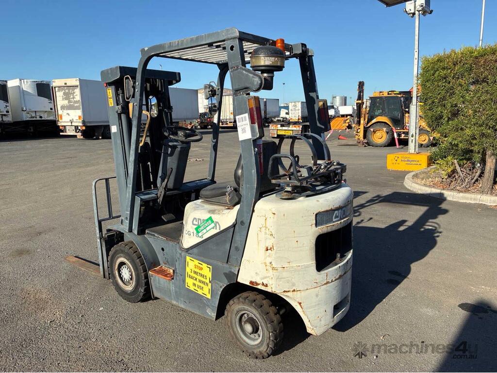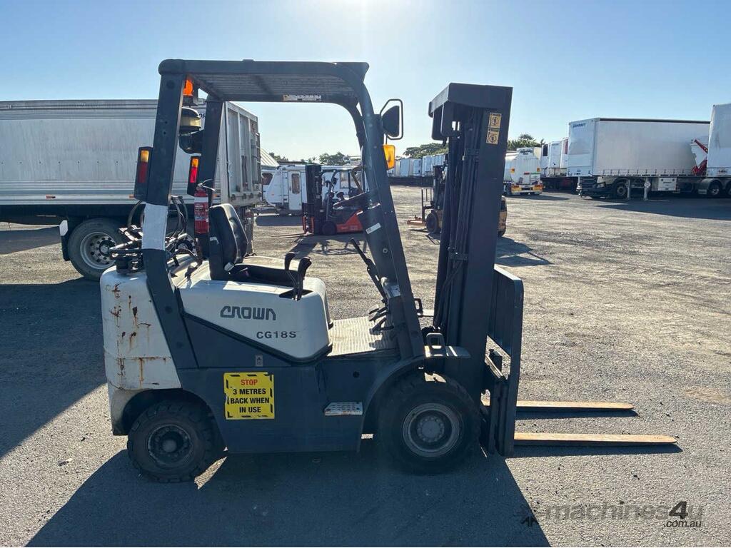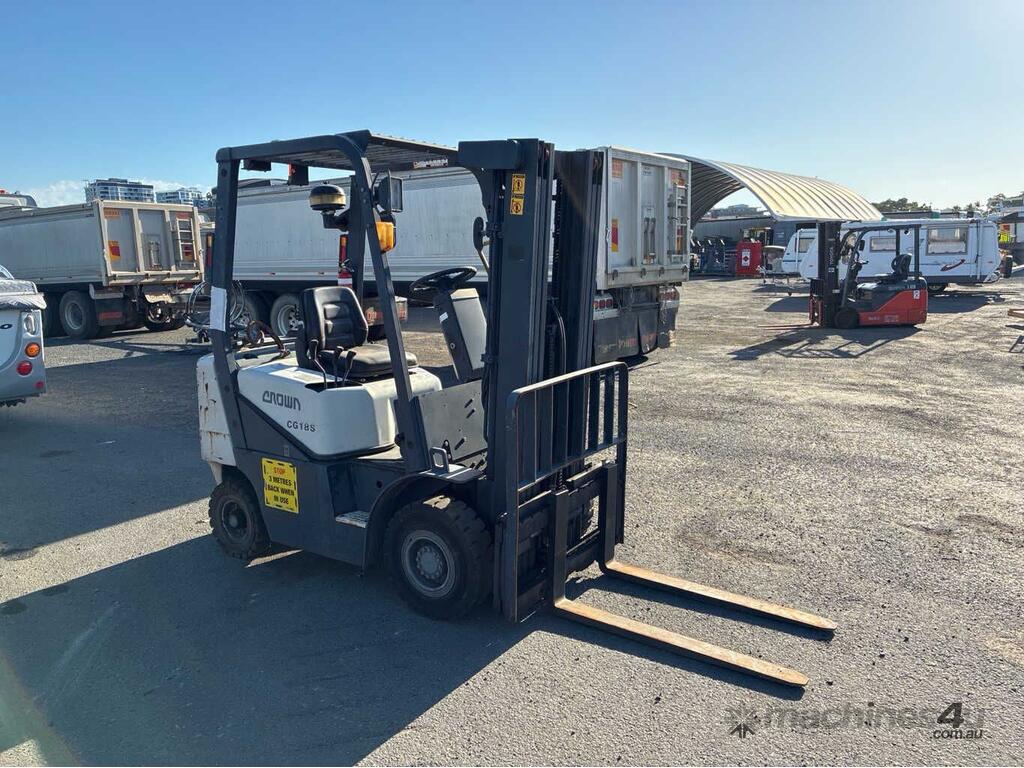 CP: CIRCA 2005,Crown,CG18S-2,Forklift,4 Cyl,Diesel,Odometer not visible,7181 (Hrs. Showing on Hour meter),Colour: White,Unregistered,Serial No: 06-01432R,Sold with No Plates