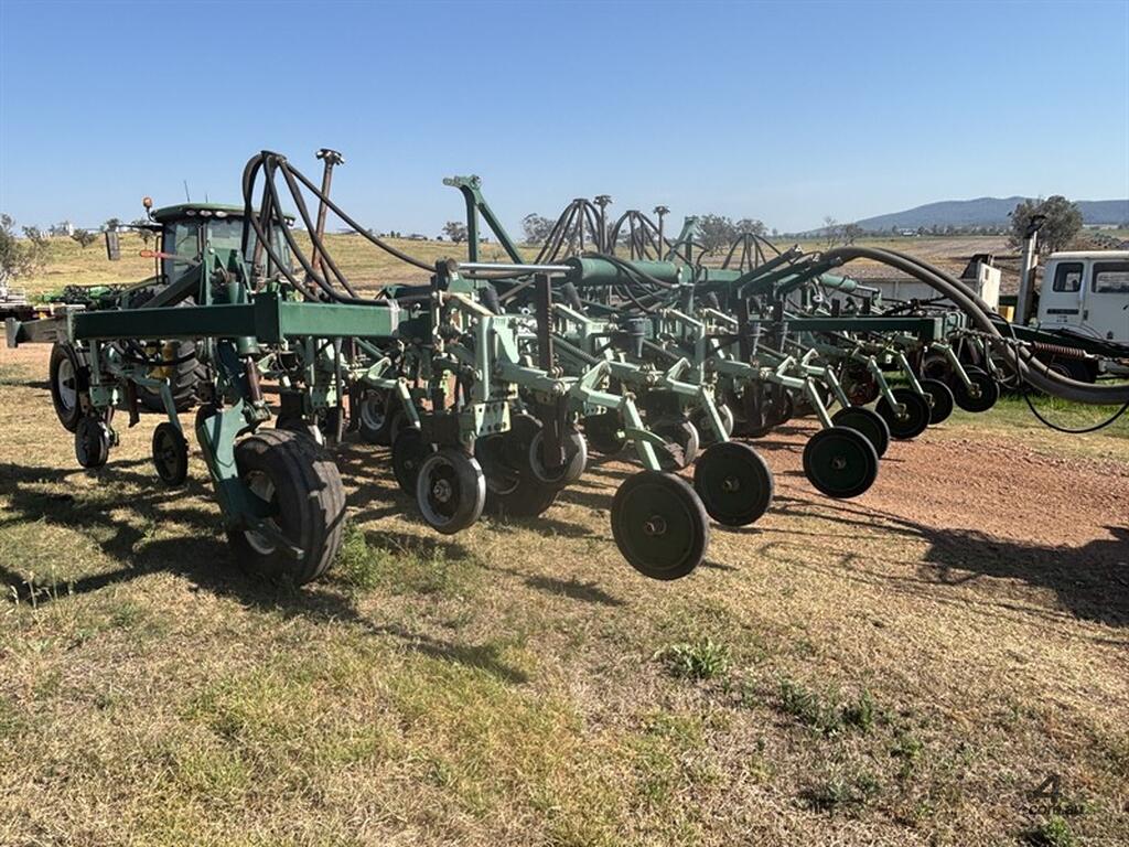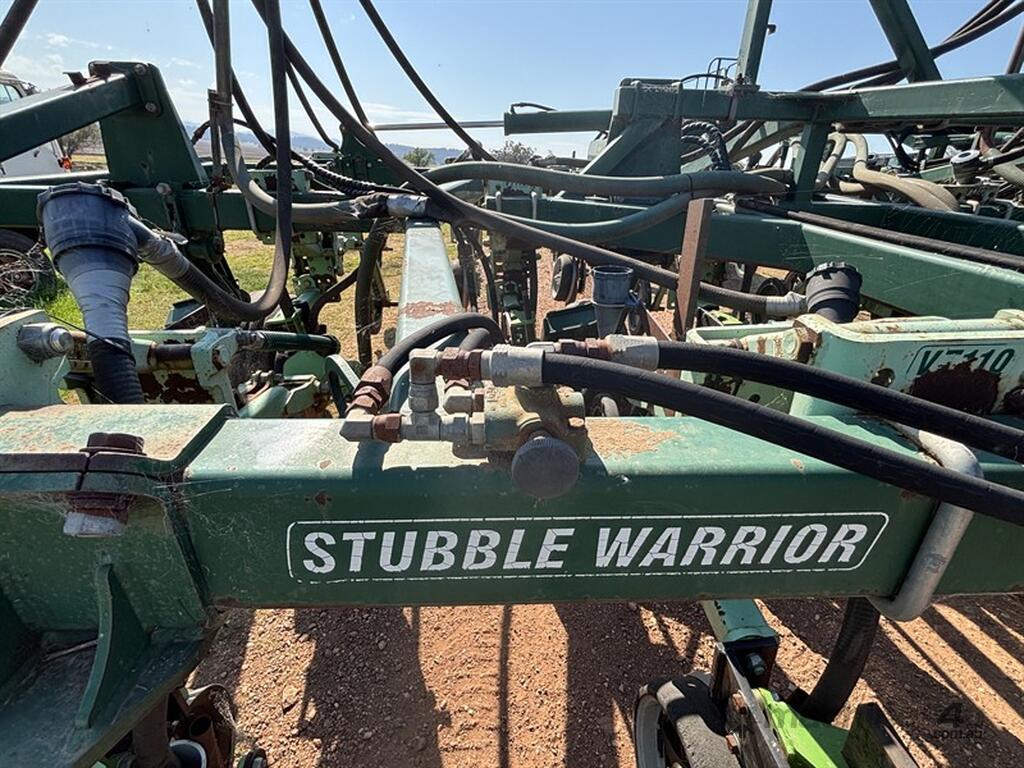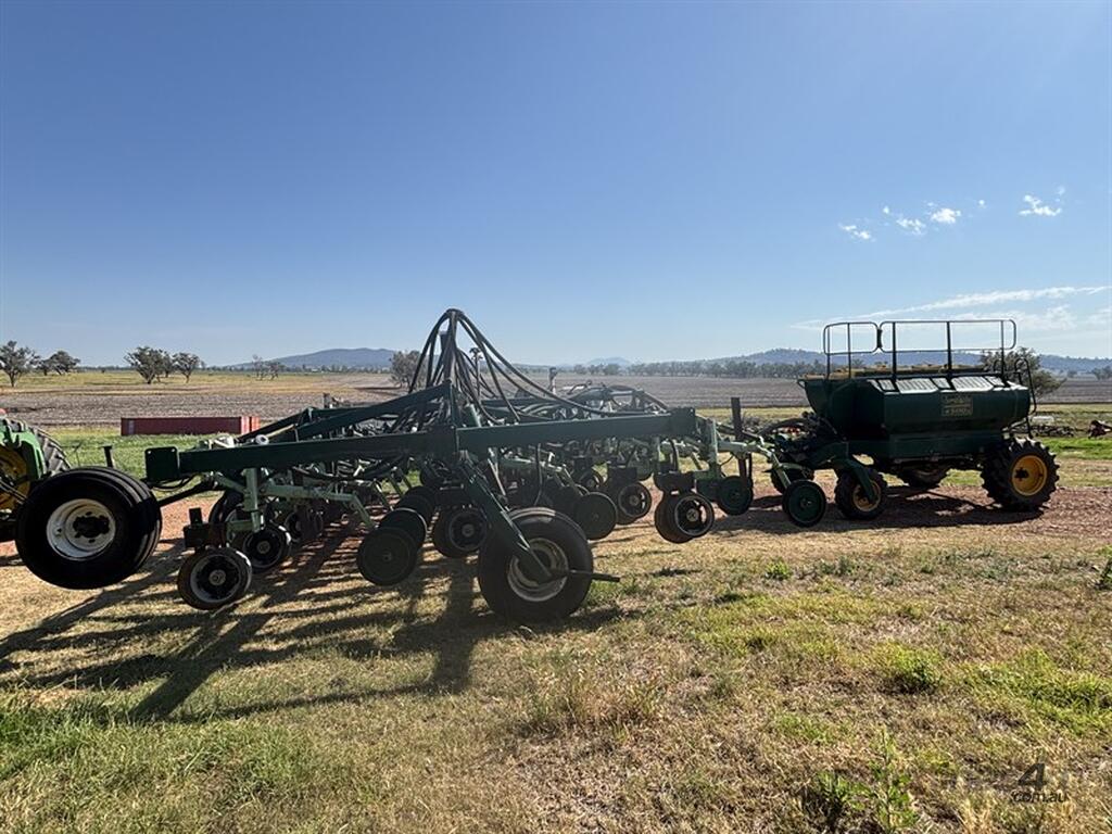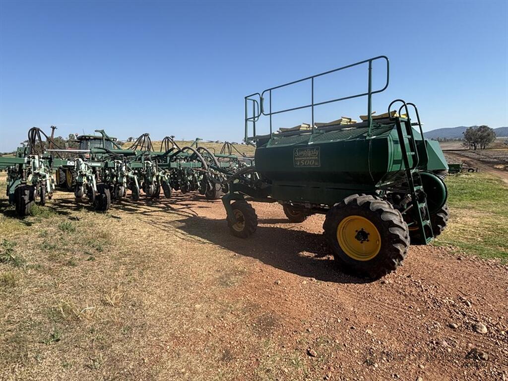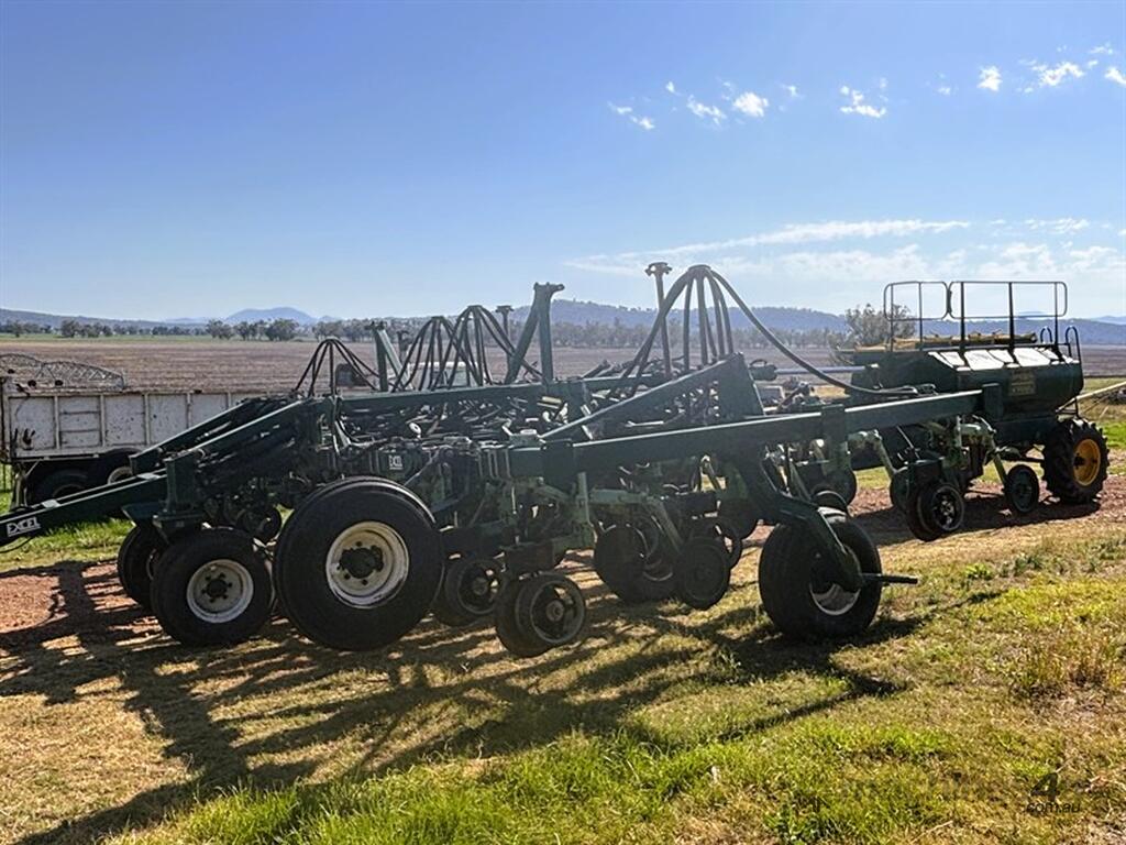2005 EXCEL STUBBLE WARRIOR WITH SIMPLICITY CART, Bar s/n: EXSW0042, Cart s/n: 7, 30' bar, 28 units fitted, paralellogram retrofitted with Boss single discs, dual seed tubes on disc plus single tube on tynes, press wheels, Simplicity 4500L tow behind air cart, 3 bins plus small seeds box, monitor and wiring included, original Excel double disc units included, comes with press wheel scrapers and some spares, presents well, located Quirindi, available through MRE Auctions