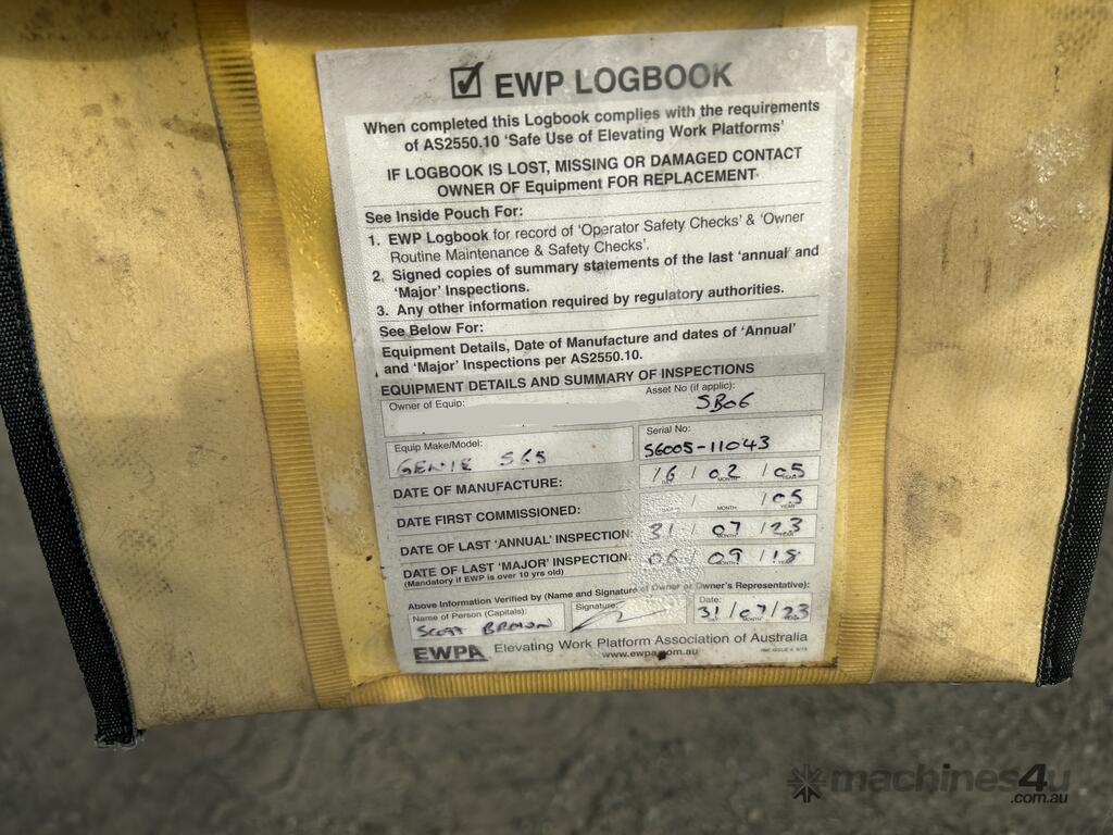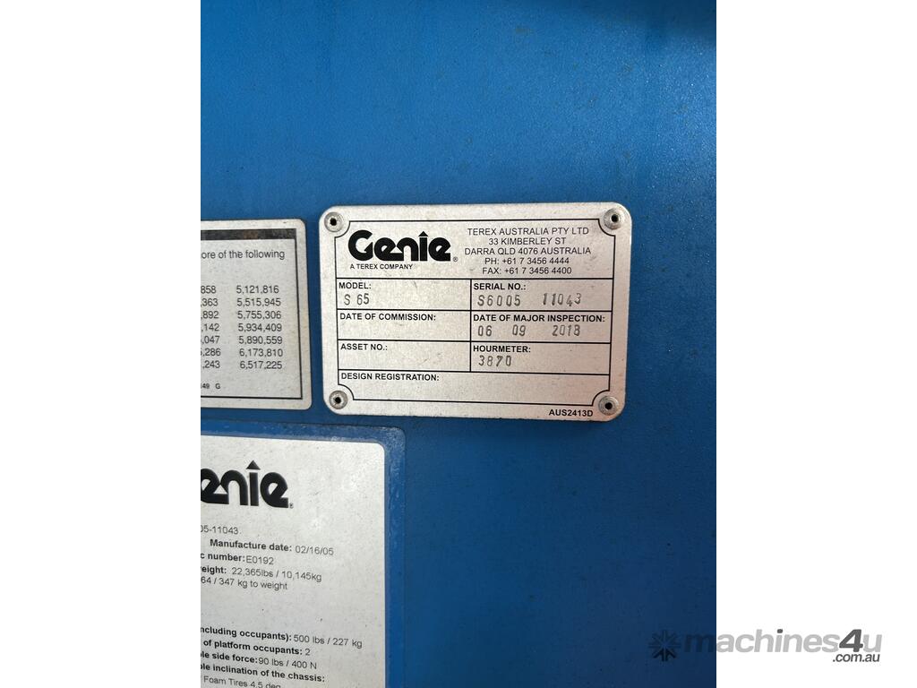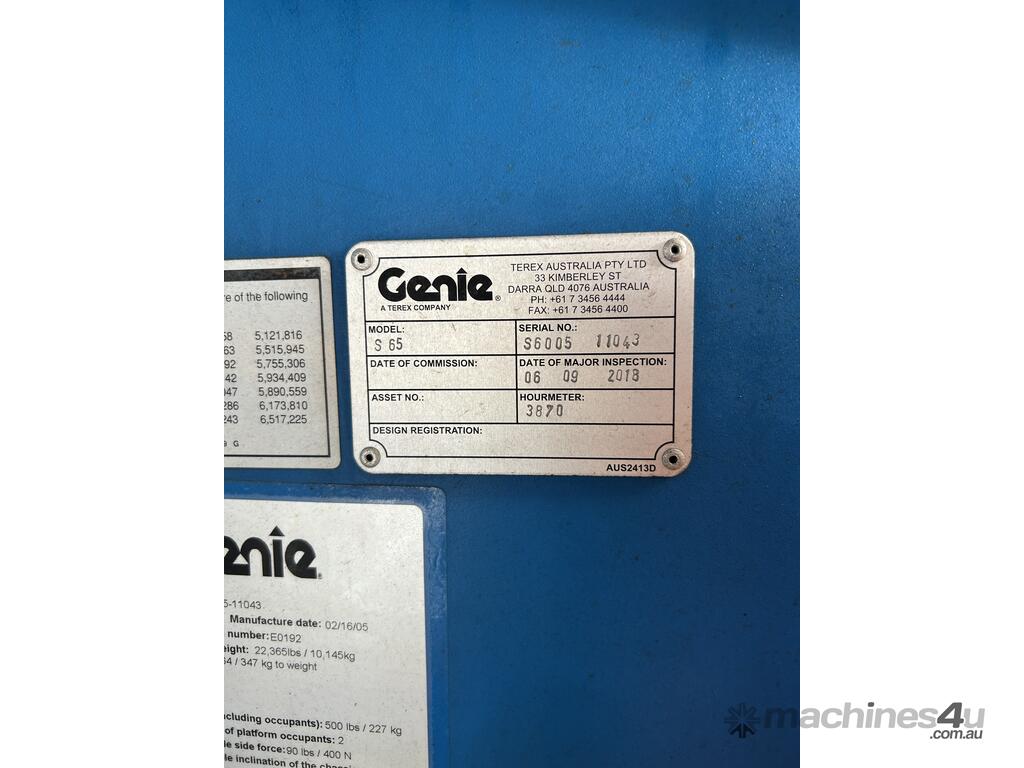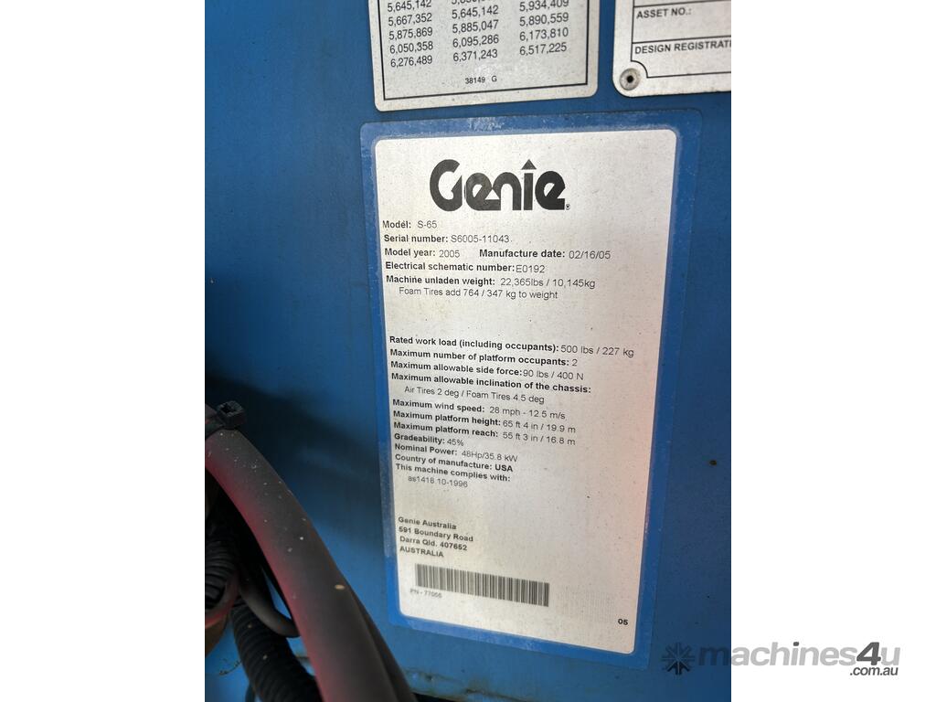 2005 Genie S-65 Straight Boom :      $46,000 AUD($50,600 Inc. GST)