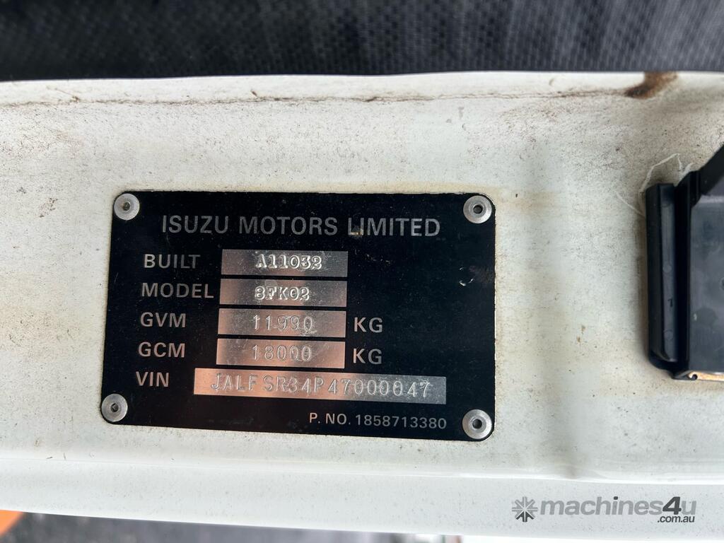 CP: 02/2005,Isuzu,FSR700,Service Body,Manual,Spring,6 Cyl,Diesel,6 Gears,213646 (Kms. Showing on Odometer),Hourmeter not visible,Colour: White,Rego. No: NP(431KAH), Unregistered QLD,VIN: JALFSR34P47000047,Key No: 271,GVM: 11990,GCM: 18000,Sold with No Plates,Key No: 271