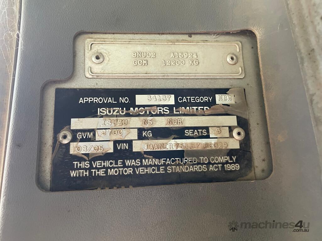 CP: 08/2005,Isuzu,NQR450,Table Top,Manual,Spring,4 Cyl,Diesel,6 Gears,173860 (Kms. Showing on Odometer),Hourmeter not visible,Colour: White,Unregistered,VIN: JAAN1R75L57100029,GVM: 8700,GCM: 12200,Sold with No Plates