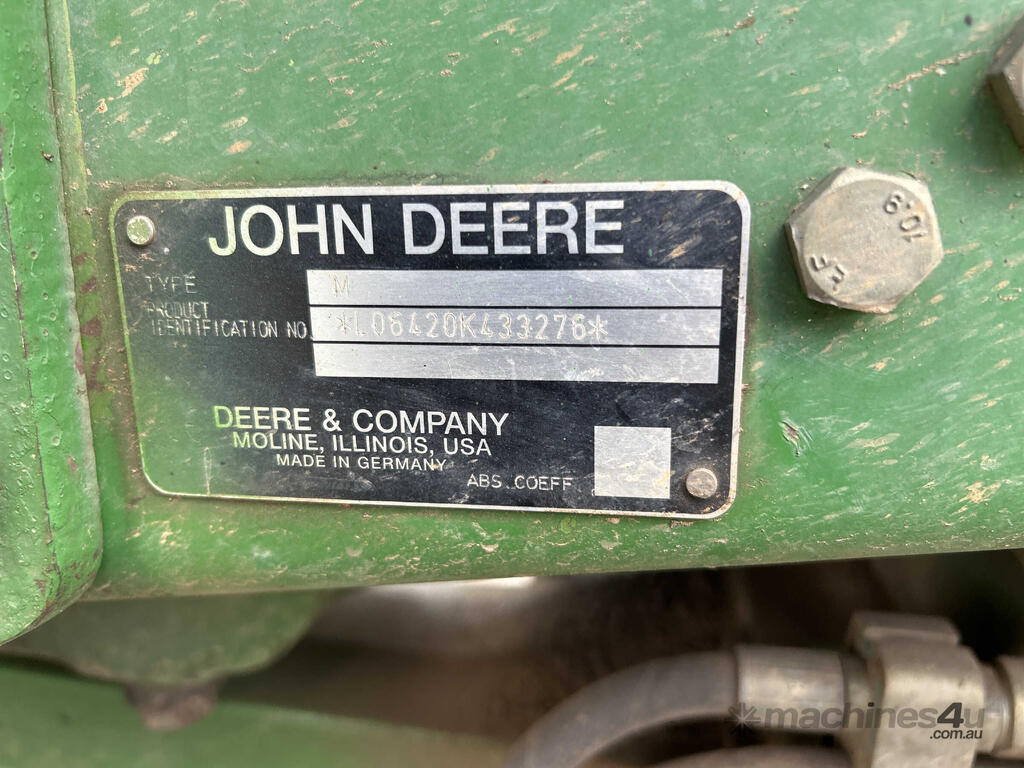 CP: CIRCA 2005,John Deere,6420,Loader/Tractor 4WD,4 Cyl,Diesel,Odometer not visible,6448 (Hrs. Showing on Hour meter),Colour: Green,Rego. No: NP(AD40YR), Unregistered NSW,Chassis: L06420K433276,Serial No: L06420K433276,Sold with No Plates,Key No: 3