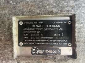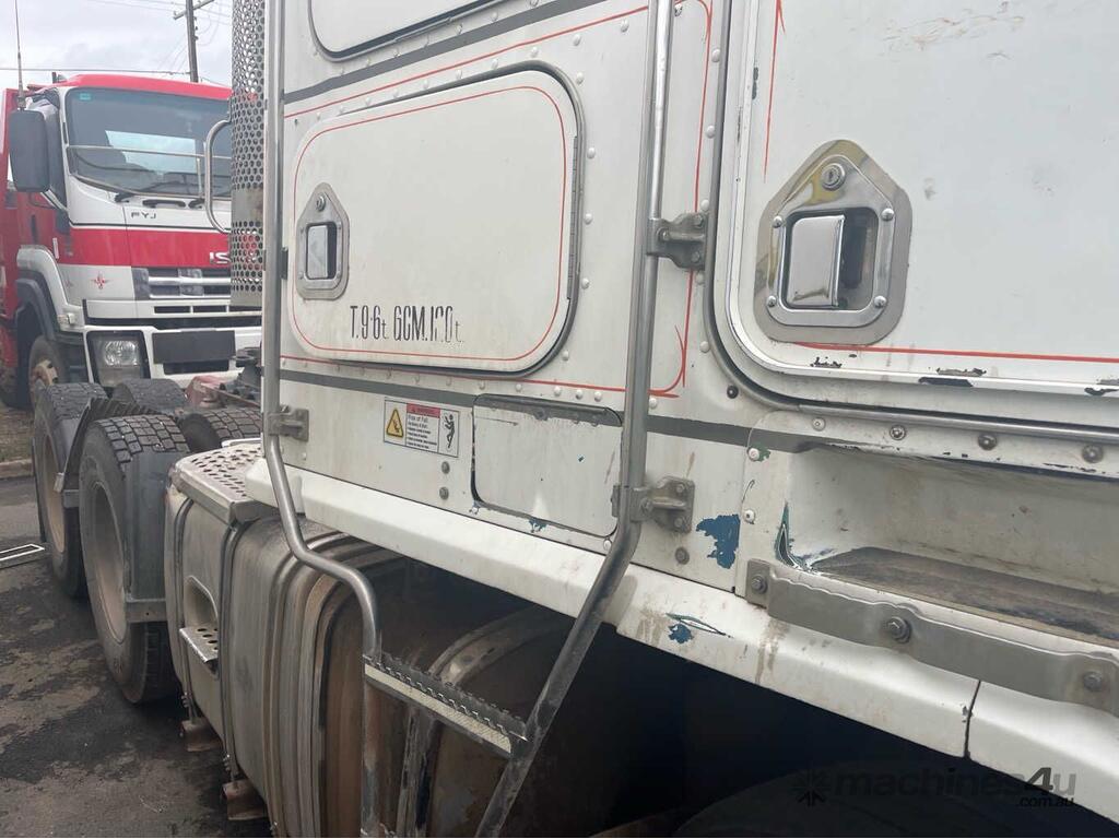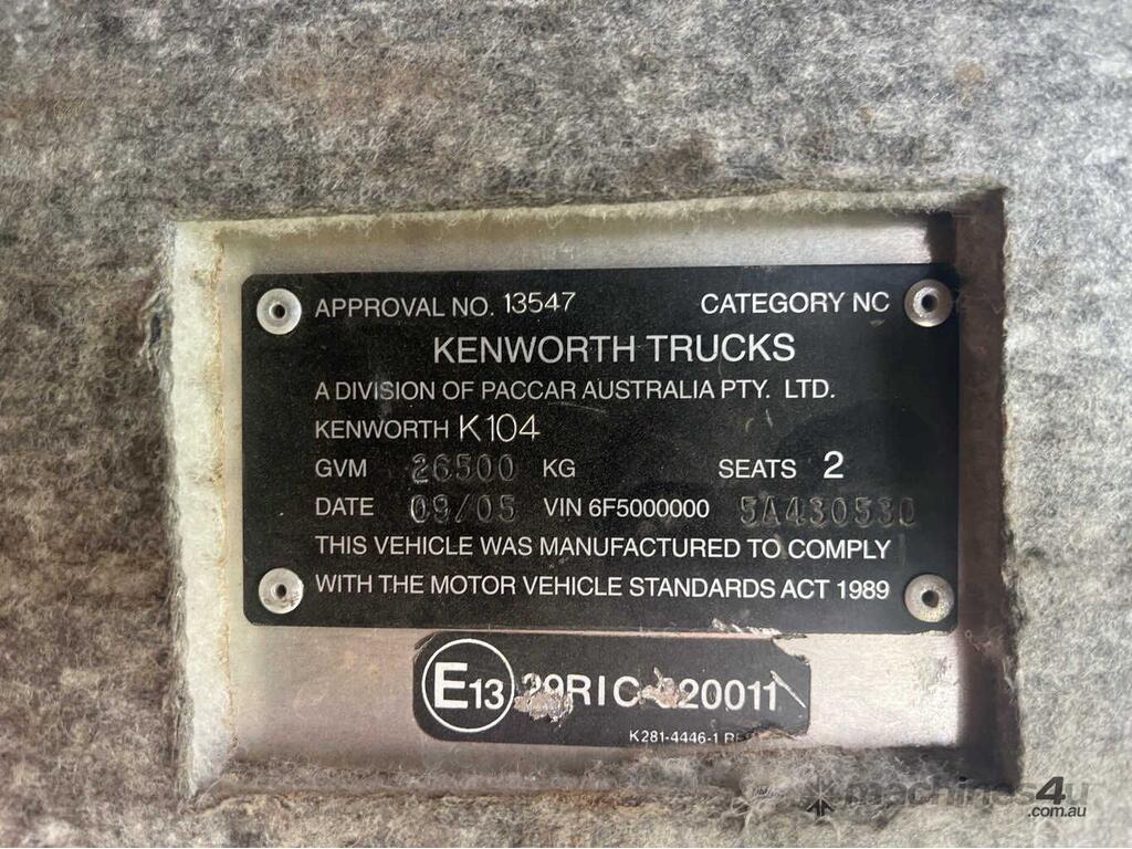 CP: 09/2005,Kenworth,K104,Prime Mover,Automated Manual Transmission,Airbag,6 Cyl,Diesel Turbo,18 Gears,Odometer not visible,Hourmeter not visible,Colour: White,Rego. No: NP(SB93LR), Unregistered SA,VIN: 6F50000005A430530,Length: 6.2 m,GVM: 26500,GCM: 120000,Sold with No Plates,WOVR Status: Repairable Write-Off,Incident Type: Impact