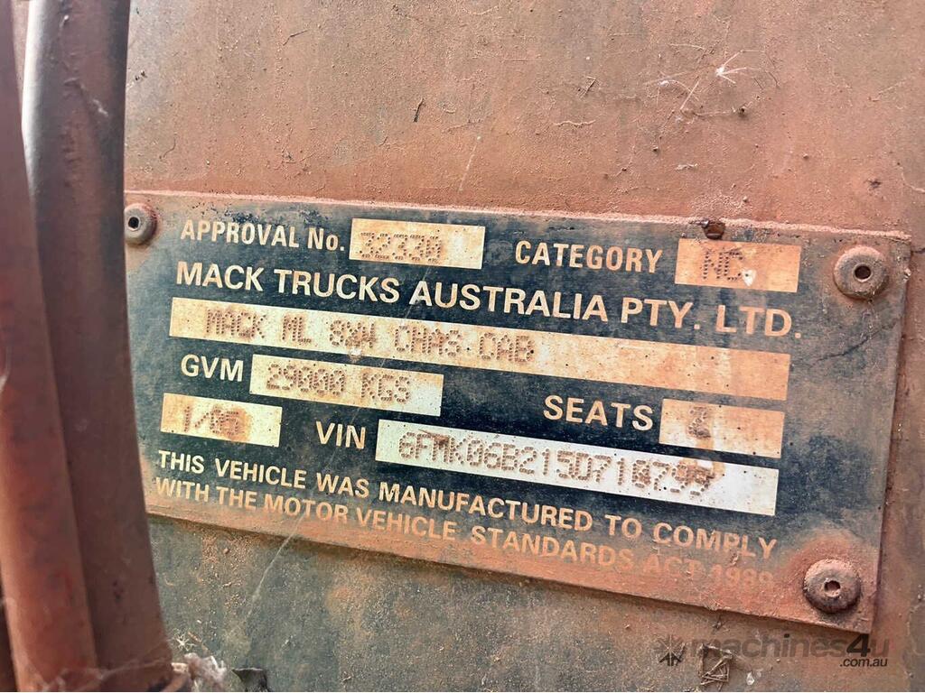 CP: 01/2005,Mack,ML,Concrete Agitator,Manual,Air Bag Suspention ,Engine #: CUM-285 46435184,Cummins ,6 Cyl,Diesel,Odometer not visible,Hourmeter not visible,Colour: White,Rego. No: CF01NW NT,VIN: 6FMK06B215D710799,Chassis: CH6668RST-10799,Length: 8.3 m,GVM: 29000,GCM: 33400,Sold with No Plates,WOVR Status: WOVR N/A