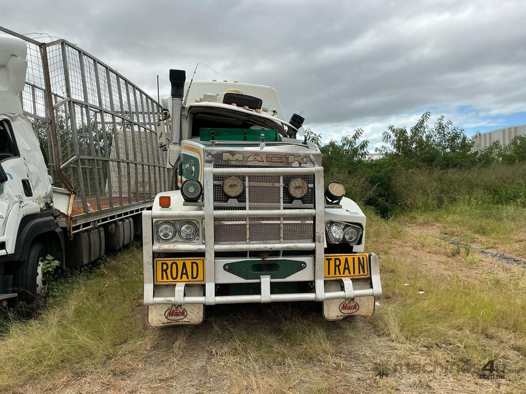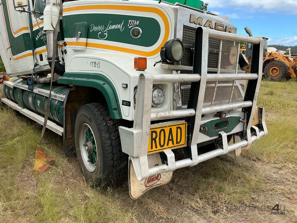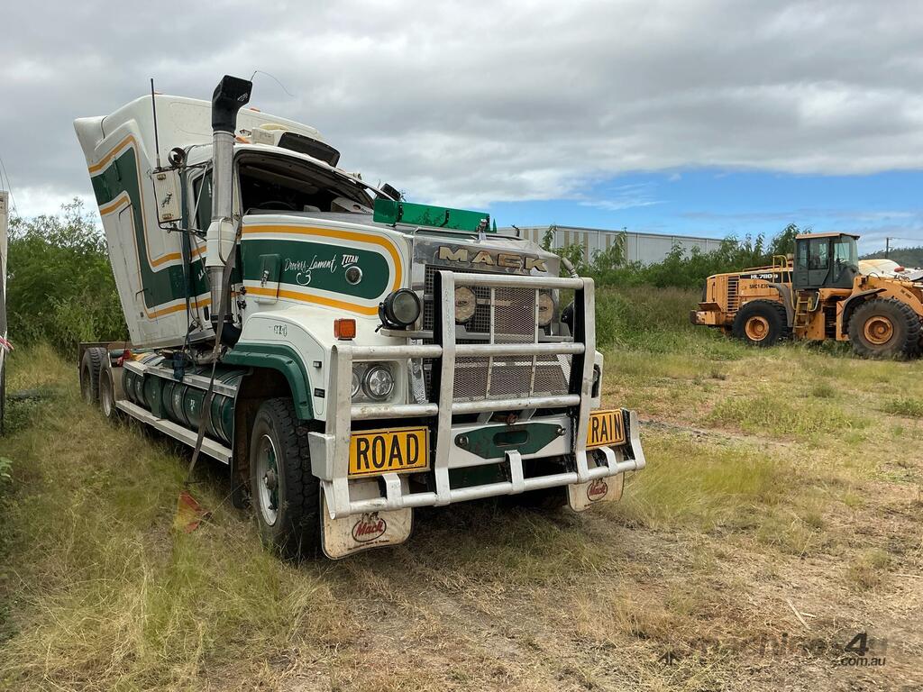 CP: 02/2005,Mack,Titan,Prime Mover,Manual,Spring ,CAT,6 Cyl,Diesel,18 Gears,Odometer not visible,Hourmeter not visible,Colour: White,Rego. No: NP(XB25UJ), Unregistered QLD,VIN: 6FMB05C,Length: 9 m,GVM: 26500,GCM: 140000,Sold with No Plates,WOVR Status: WOVR N/A,Incident Type: Impact