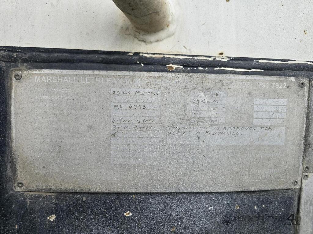 2005 Model. A 23 CU Meter. B 25CU Meter. 13,900 King Pin To Back Of Bar. 15,600 Total Length. 57.0T, Payload 35 T, Each Trailer Holding 17.5 T. Fitted With Air Hatches.