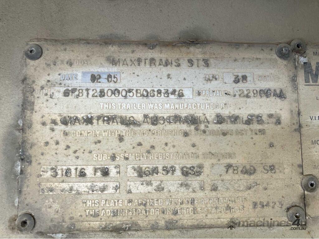 CP: 02/2005,Built: 02/2005,Maxitrans,ST3,Tri Axle Flat Top B Trailer,Hubometer not visible,Colour: White,Rego. No: NP(TA08DL), Unregistered NSW,VIN: 6F8T250005B068346,Sold with No Plates