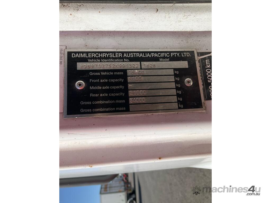CP: 03/2005,Mercedes Benz,Atego 1628,Chipper Tipper,Manual,Airbag,6 Cyl,Diesel Turbo,6 Gears,Odometer not visible,Hourmeter not visible,Colour: White,Rego. No: NP(XN33CB), Unregistered NSW,VIN: WDB9702752K991327,Key No: 152E,Length: 7 M,GVM: 16000,GCM: 34000,Sold with No Plates,WOVR Status: WOVR N/A,Key No: 152E