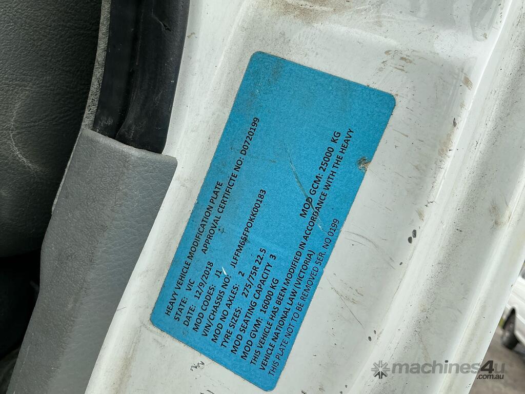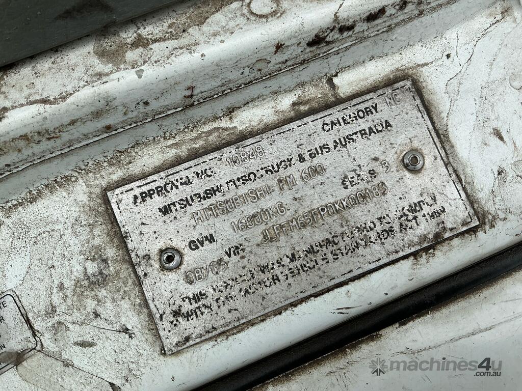 CP: 08/2005,Mitsubishi,FM600,Rigid,Manual,6 Cyl,Diesel,Odometer not visible,Hourmeter not visible,Colour: White,Rego. No: NP(1NV1TE), Unregistered VIC,VIN: JLFFM65FP0KK00183,Length: 10 m,GVM: 16000,Sold with No Plates,WOVR Status: WOVR N/A,Incident Type: Impact
