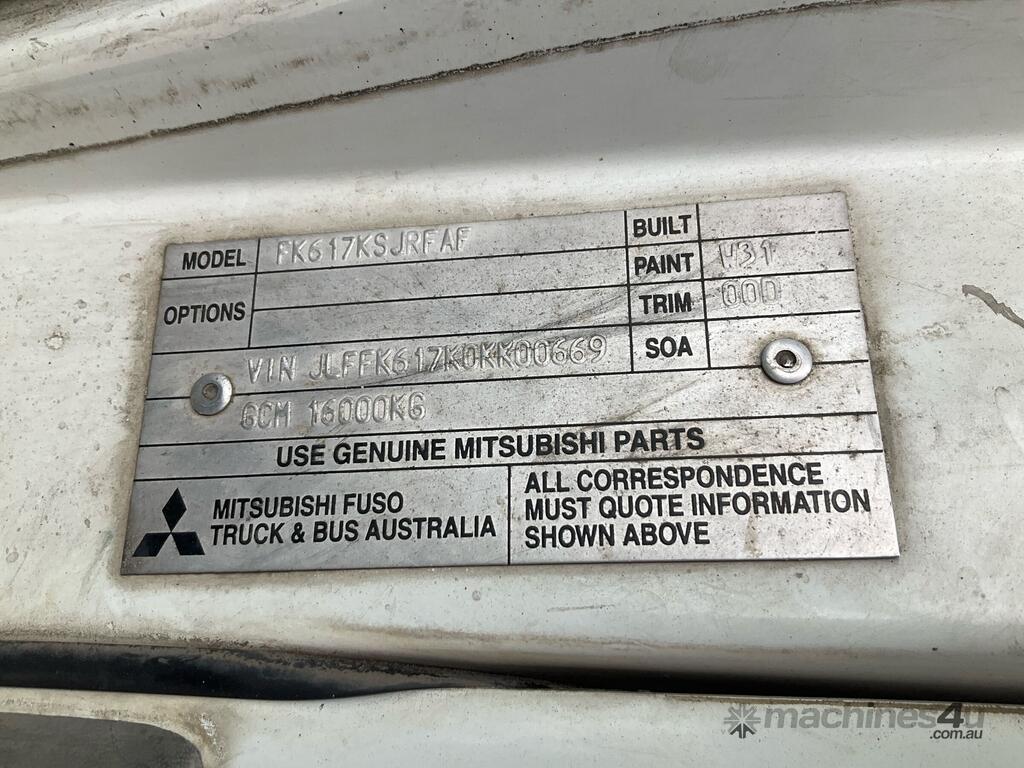 CP: 09/2005,Mitsubishi,Fighter FK 6.0,Half Pan Half Curtain,Manual,Leaf Spring Suspension,6 Cyl,Diesel,171158 (Kms. Showing on Odometer),Hourmeter not visible,Colour: White,Rego. No: NP(TVI167), Unregistered VIC,VIN: JLFFK617K0KK00669,Key No: 43,Length: 18 ft,GVM: 10400,GCM: 16000,Sold with No Plates,Key No: 43