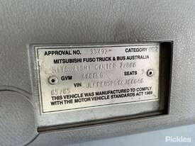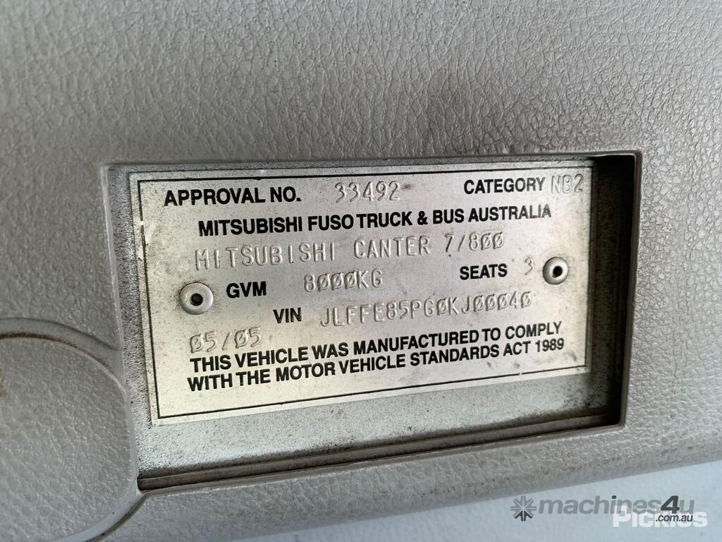 CP: 05/2005,Mitsubishi Fuso,Canter 7/800,Curtainsider,Manual,spring,4 Cyl,Diesel,Odometer not visible,Hourmeter not visible,Colour: White,Rego. No: NP(453XZJ), Unregistered QLD,VIN: JLFFE85PG0KJ00040,GVM: 8000,GCM: 11500,Sold with No Plates,WOVR Status: WOVR N/A,Incident Type: Impact