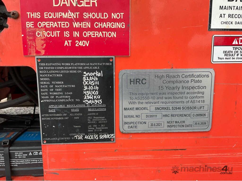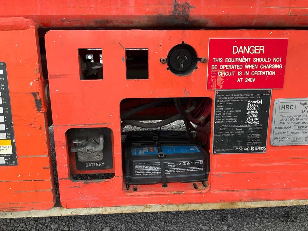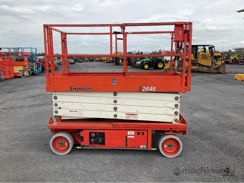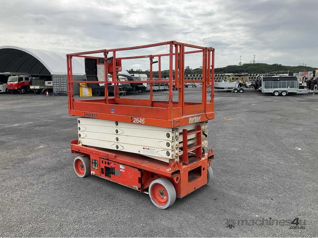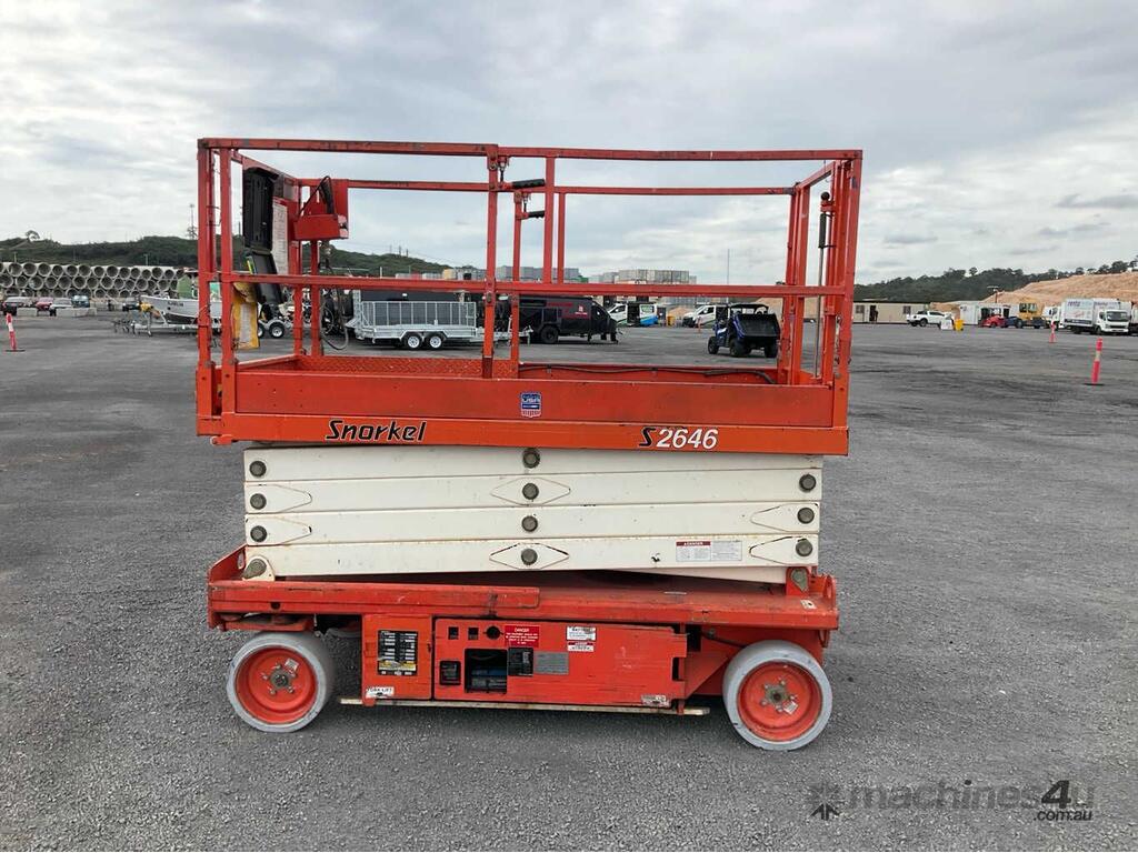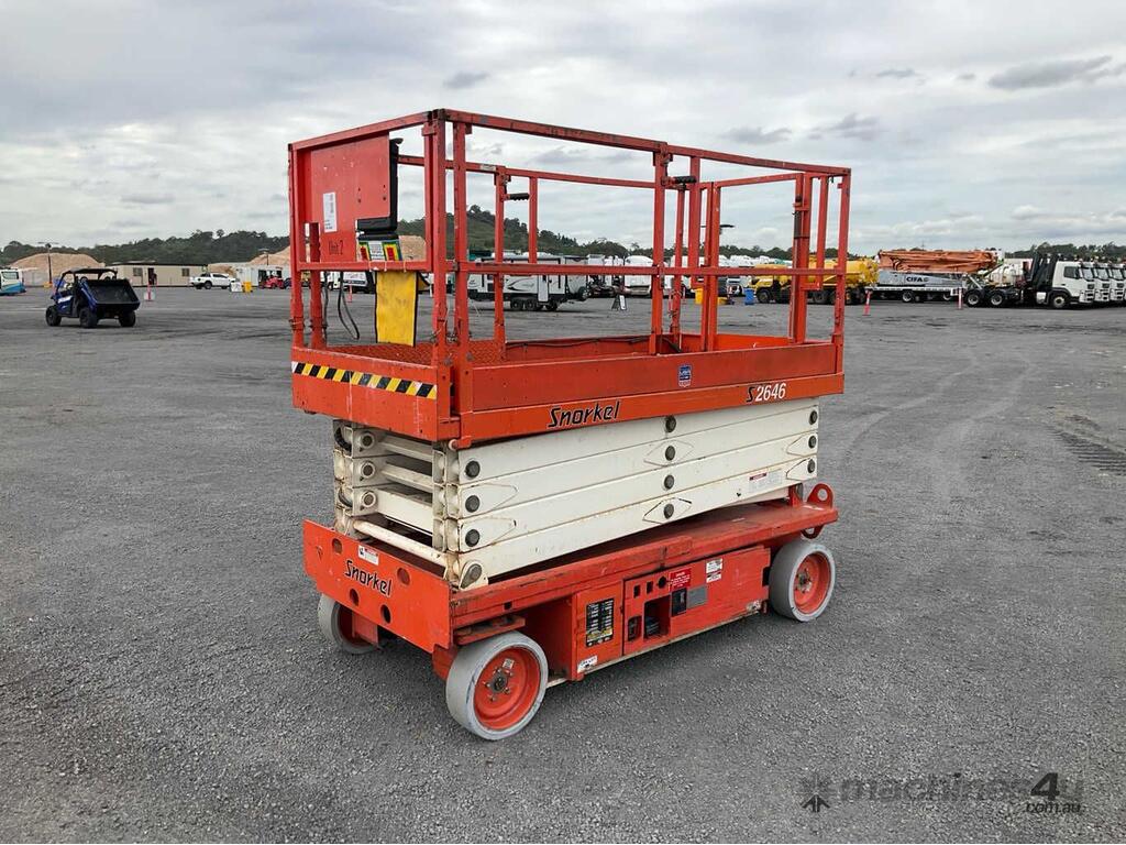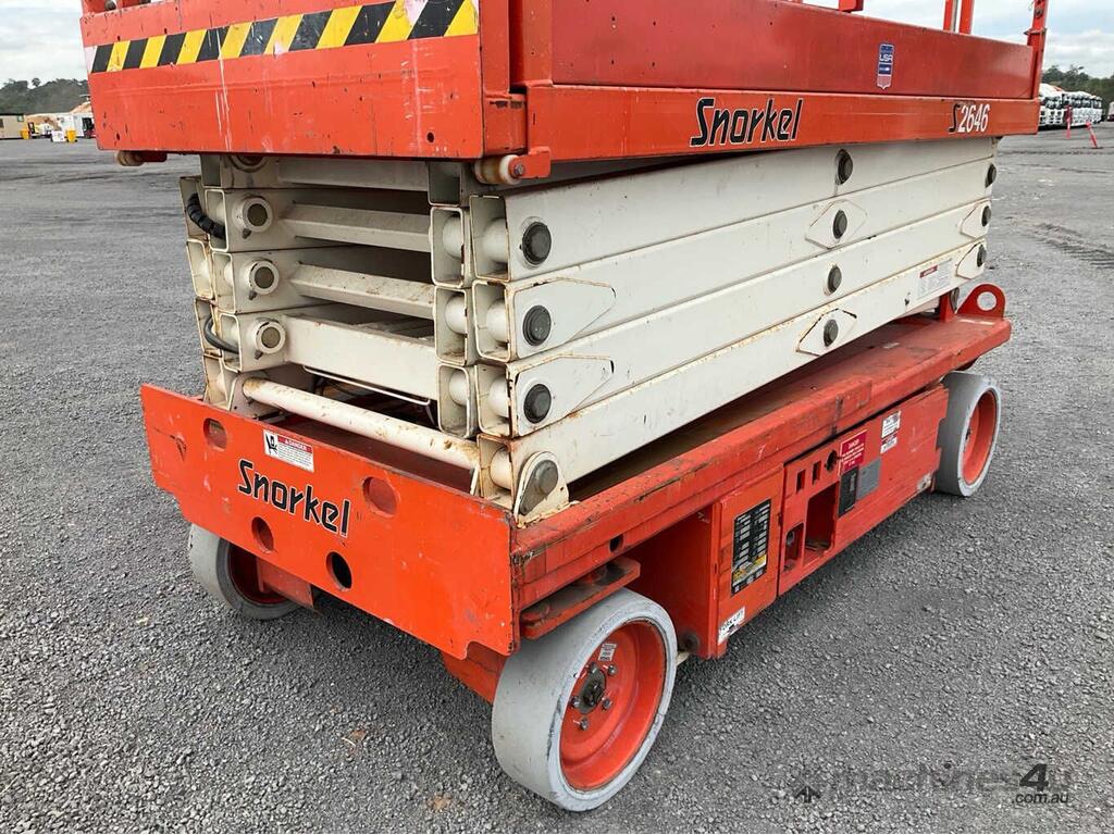 CP: CIRCA 2005,Snorkel,S2646,Scissor Lift (Electric),Battery,Odometer not visible,265 (Hrs. Showing on Hour meter),Colour: Orange,Unregistered,Serial No: DC05111,Sold with No Plates,Key No: NO KEY
