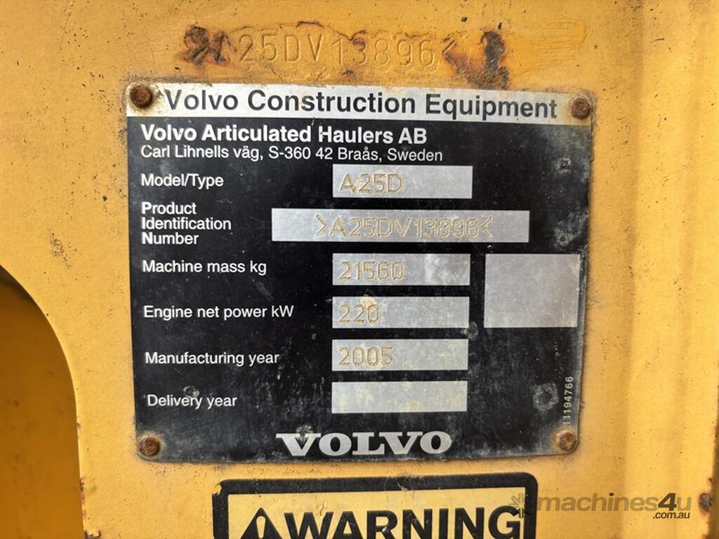 2005 VOLVO A25D ARTICULATED DUMP TRUCK :      Ask for Price