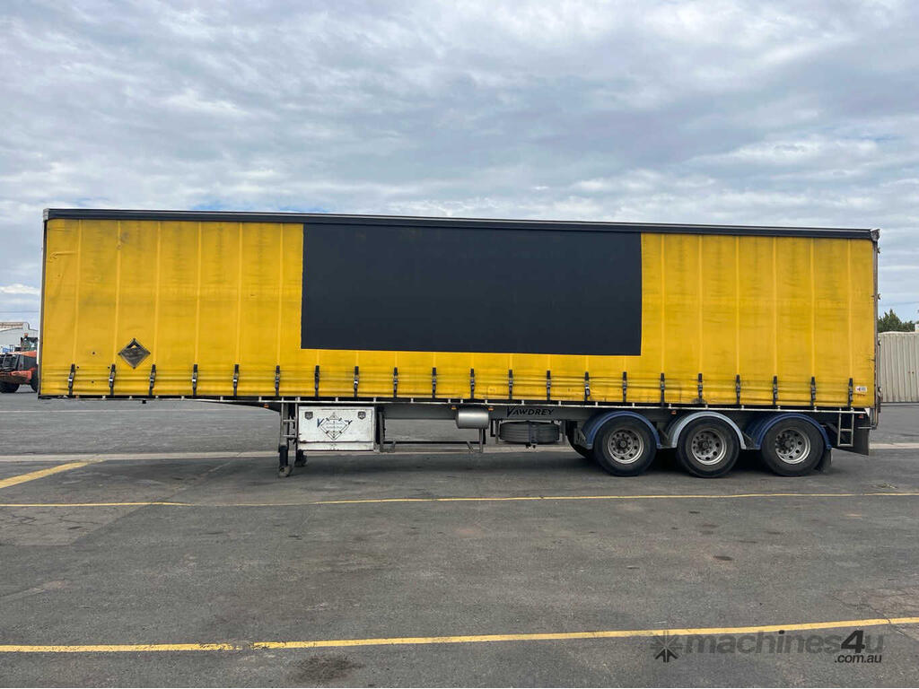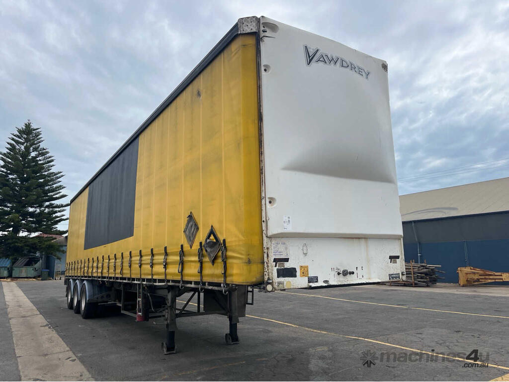 CP: 07/2005,Built: 07/2005,Vawdrey,VB S3,Tri Axle Flat Top Curtainsider B Trailer,445423 (Kms. Showing on Hubometer),Colour: Yellow,Unregistered,VIN: 6HJVAWAUS5SE01744,Sold with No Plates