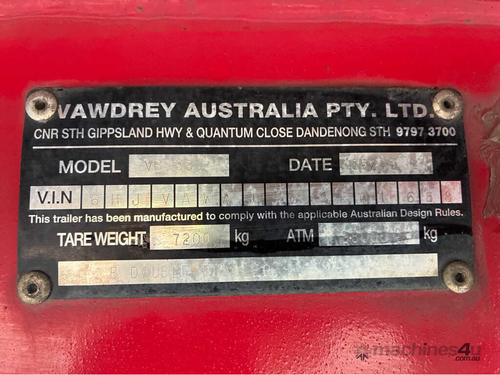 2005 Vawdrey VB S3 Tri Axle Flat Top Curtainsider combination :      Ask for Price