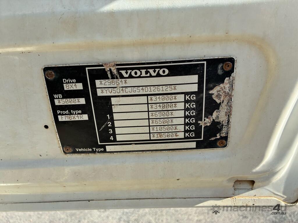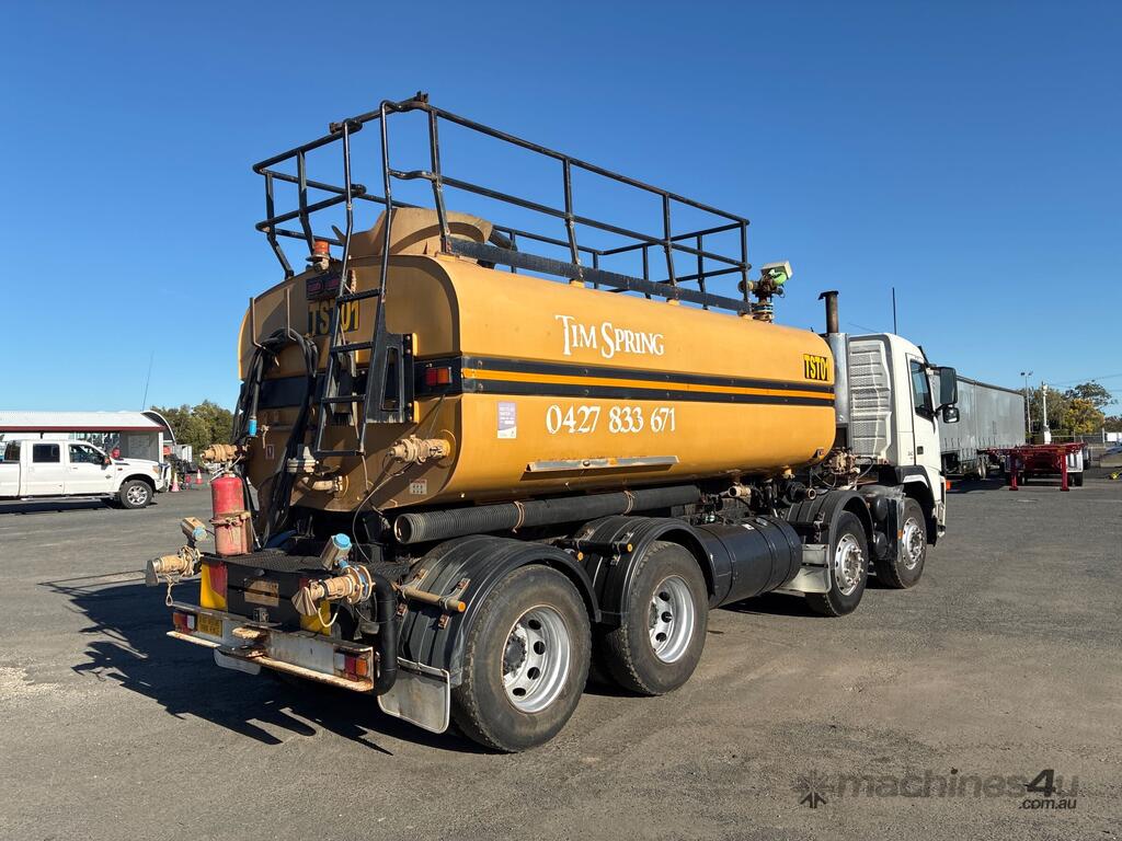 CP: 01/2005,Built: 01/2005,Volvo,FM9,Water Cart,Manual,Spring,Engine #: D9015593A2A,6 Cyl,Diesel,163139 (Kms. Showing on Odometer),18091 (Hrs. Showing on Hour meter),Colour: White,Unregistered,VIN: YV5J4CJG54D126125,Key No: 6,GVM: 34000,GCM: 34000,Sold with No Plates,Key No: 6