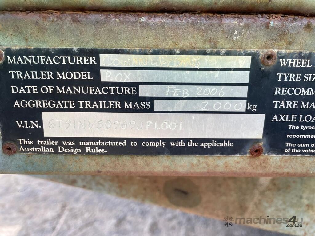 CP: 02/2006,Cowan Welding & Fabrication,Box Trailer,8x5 Tandem Axle Box Trailer,Hubometer not visible,Colour: Blue,Rego. No: NP(V82363), Unregistered NSW,VIN: 6T91NVS0969JPL001,Sold with No Plates