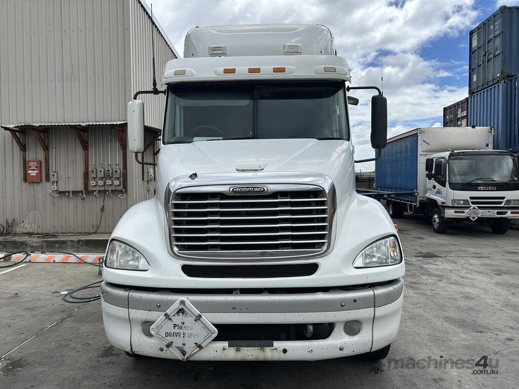CP: 11/2006,Freightliner,Columbia CL112,Prime Mover Day Cab,Manual,Airbag Suspension,Engine #: 2KS99284,CAT C-12,6 Cyl,Diesel,18 Gears,1109609 (Kms. Showing on Odometer),Hourmeter not visible,Colour: White,Unregistered,VIN: 1FVJF0AS37L997558,Key No: Onsite,GVM: 24000,GCM: 80000,Sold with No Plates,Key No: Onsite