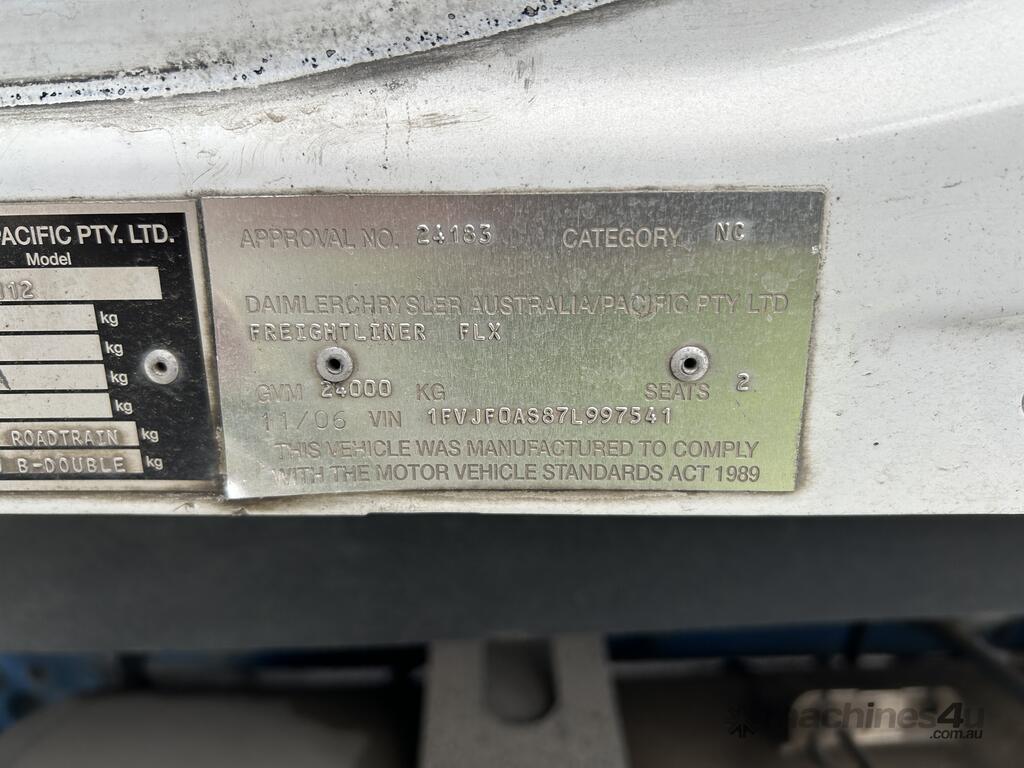 CP: 11/2006,Freightliner,Columbia CL112,Prime Mover Day Cab,Manual,Airbag Suspension,Engine #: 2KS99248,CAT C-12,6 Cyl,Diesel,18 Gears,184460 (Kms. Showing on Odometer),Hourmeter not visible,Unregistered,VIN: 1FVJF0AS87L997541,Key No: Onsite,GVM: 24000,GCM: 80000,Sold with No Plates,Key No: Onsite