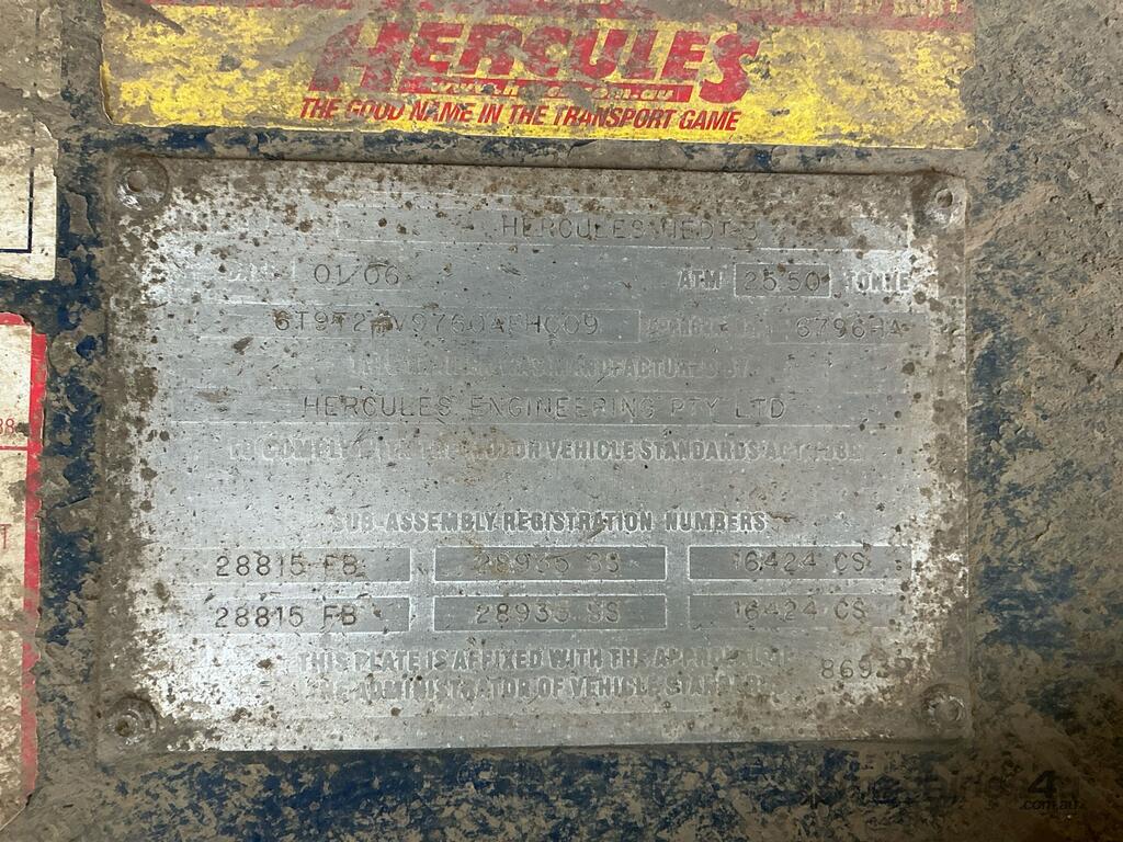 CP: 01/2006,Hercules,HEDT-3,Tipper,Hubometer not visible,Colour: White,Rego. No: NP(R16166), Unregistered VIC,VIN: 6T9T24V9760AFH009,Serial No: NULL,Sold with No Plates,WOVR Status: WOVR N/A,Incident Type: Impact