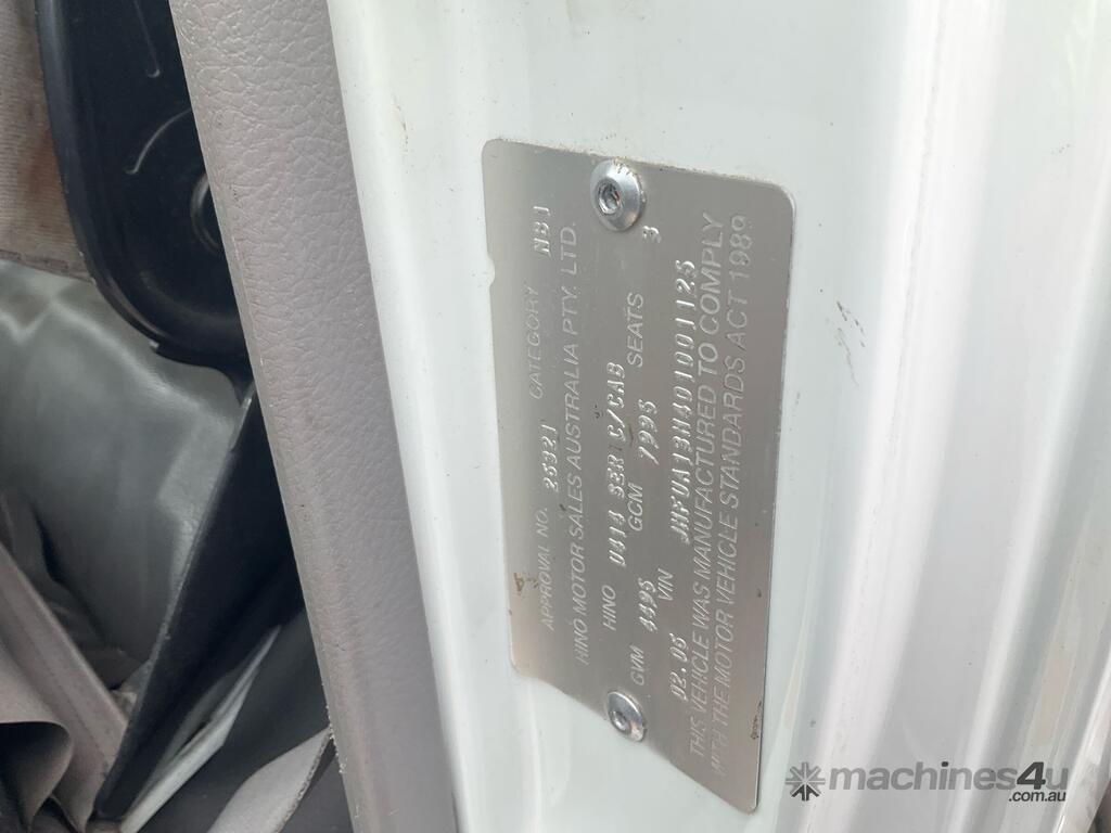 CP: 02/2006,Hino,DUTRO,Crane Truck (Table Top),Manual,Leaf Spring Suspension,4 Cyl,Diesel,332523 (Kms. Showing on Odometer),Hourmeter not visible,Colour: White,Rego. No: NP(1ZE5ZD), Unregistered VIC,VIN: JHFUA13H,Key No: 199,GVM: 4495,GCM: 7995,Sold with No Plates,Key No: 199