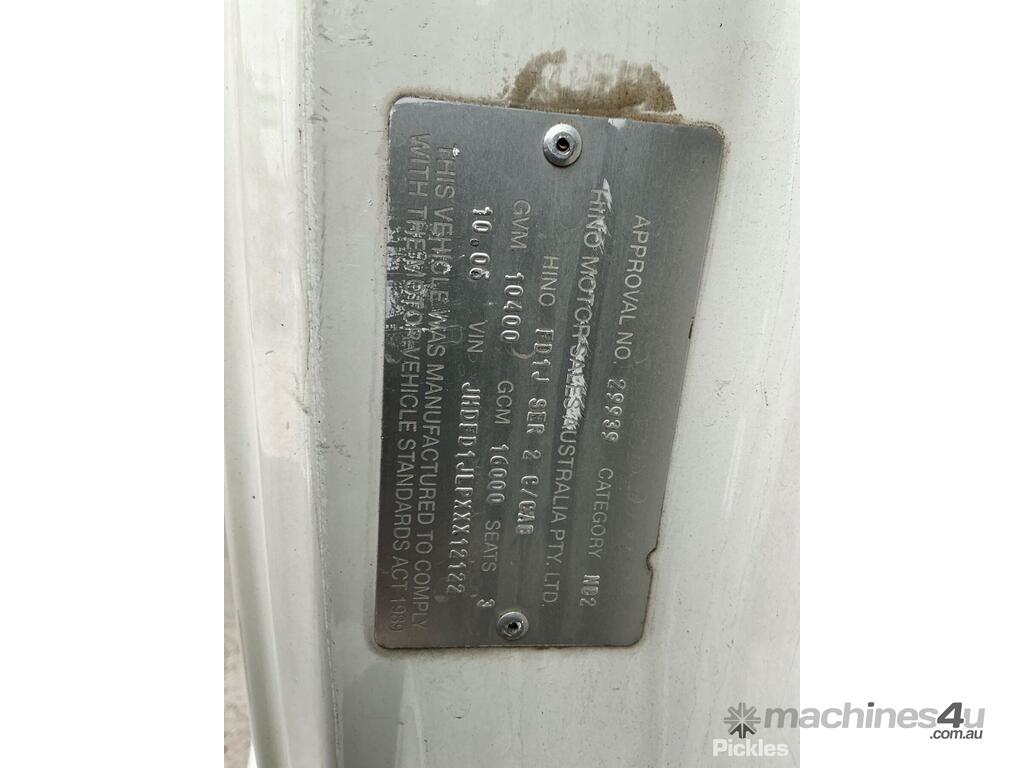 CP: 10/2006,Hino,FD,Curtainsider,Manual,6 Cyl,Diesel,962013 (Kms. Showing on Odometer),Hourmeter not visible,Colour: White,Rego. No: UMW763 VIC,VIN: JHDFD1JLPXXX12122,Length: 7.5 m,GVM: 10400,GCM: 16000,Sold with No Plates,WOVR Status: WOVR N/A,Incident Type: Impact