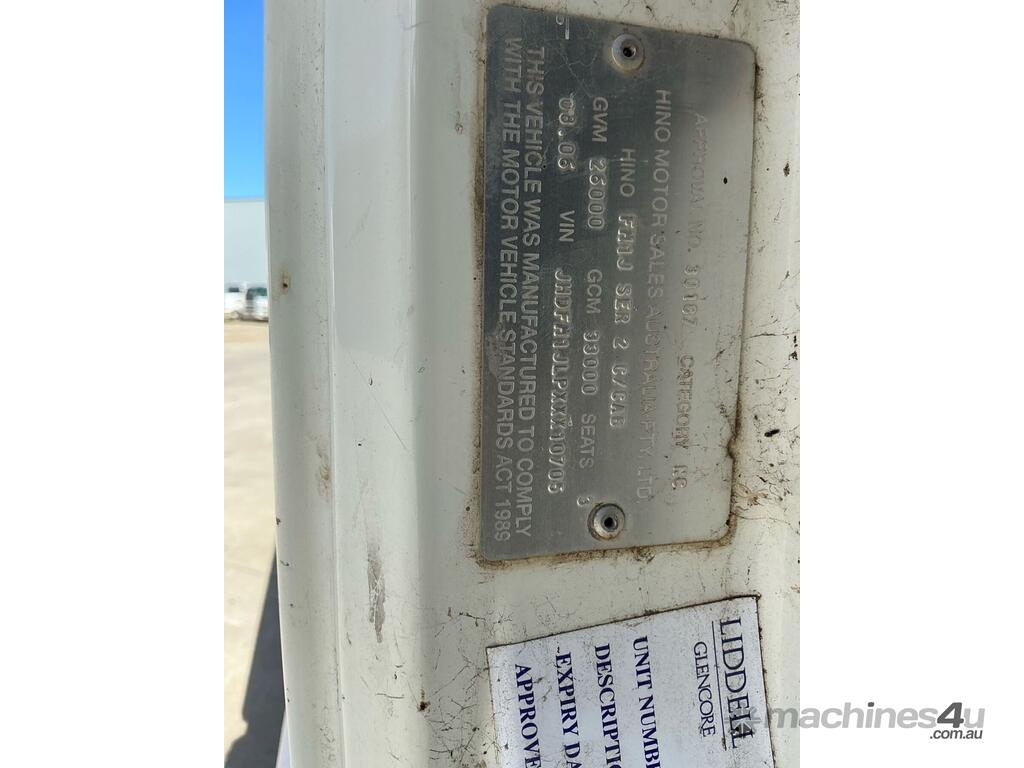 CP: 08/2006,Hino,FM1J,EWP,Manual,Leaf Spring Suspension,6 Cyl,Diesel,15 Gears,208935 (Kms. Showing on Odometer),9469 (Hrs. Showing on Hour meter),Colour: White,Unregistered,VIN: JHDFM1JLPXXX10705,Key No: 73,Length: 10100 m,GVM: 26000,GCM: 33000,Sold with No Plates,Key No: 73