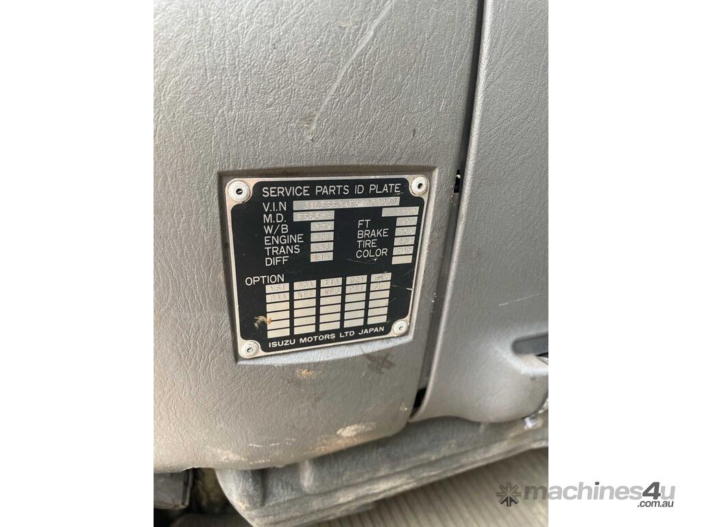 CP: 06/2006,Isuzu,F3,Table Top,Manual,Spring,Diesel,6 Gears,Odometer not visible,3379 (Hrs. Showing on Hour meter),Unregistered,VIN: JALFSS34F67000003,GVM: 10000,GCM: 15000,Sold with No Plates