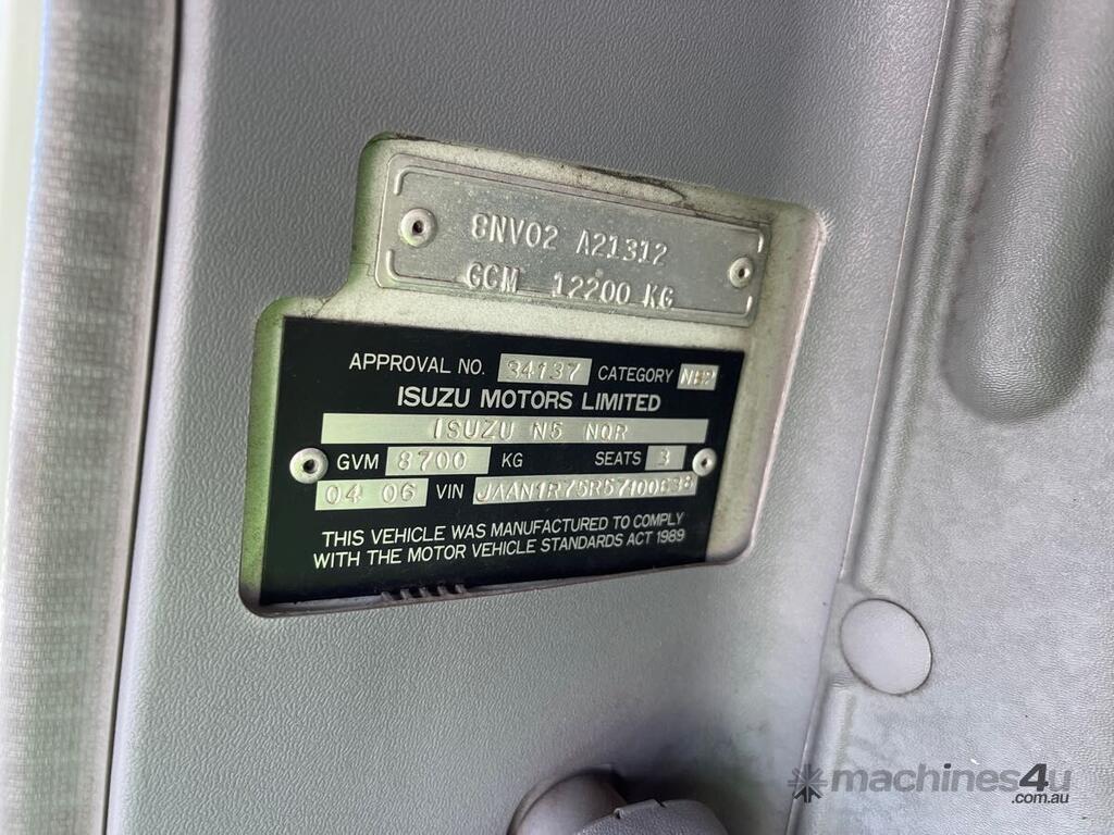 CP: 04/2006,Isuzu,Refrigerated Pantech,Manual,leaf,4 Cyl,Diesel,6 Gears,60584 (Kms. Showing on Odometer),Hourmeter not visible,Colour: White,Rego. No: SB71FE SA,VIN: JAAN1R75R57100638,Key No: P47,Length: 7.6 m,GVM: 8700,GCM: 12200,Sold with No Plates,Key No: P47