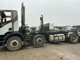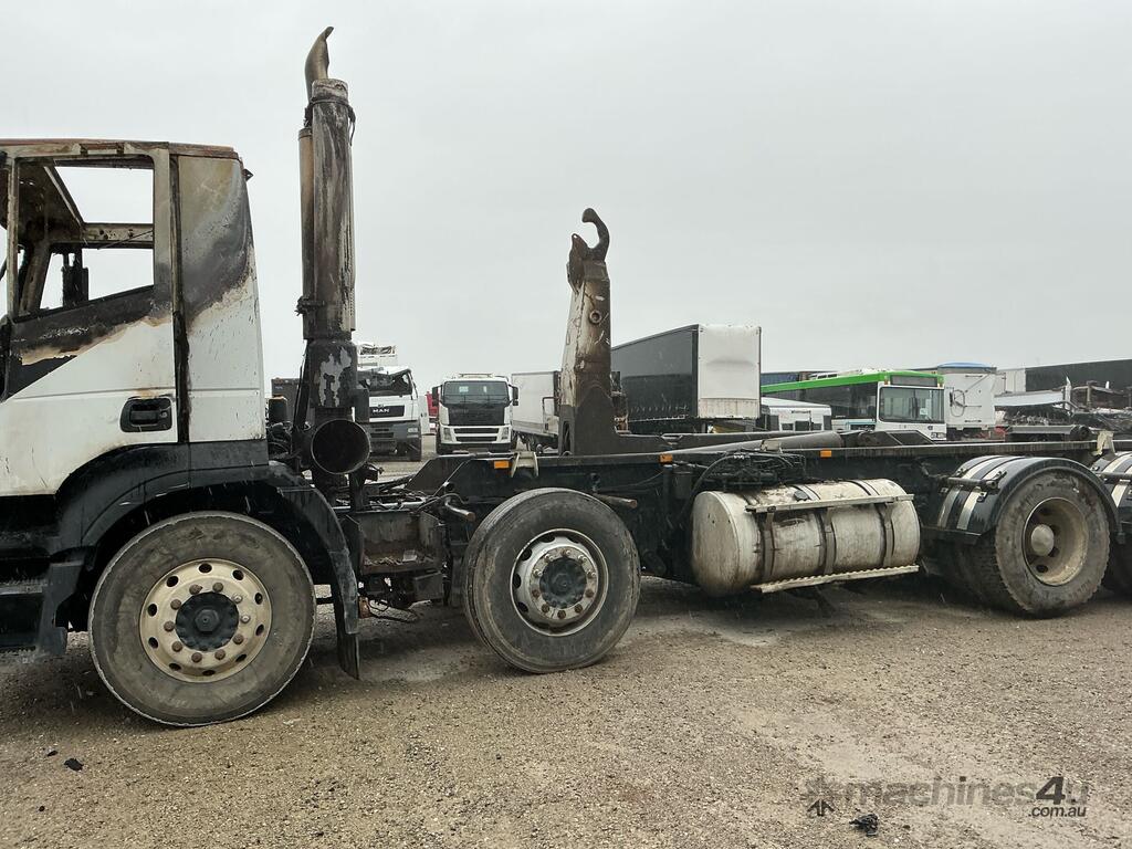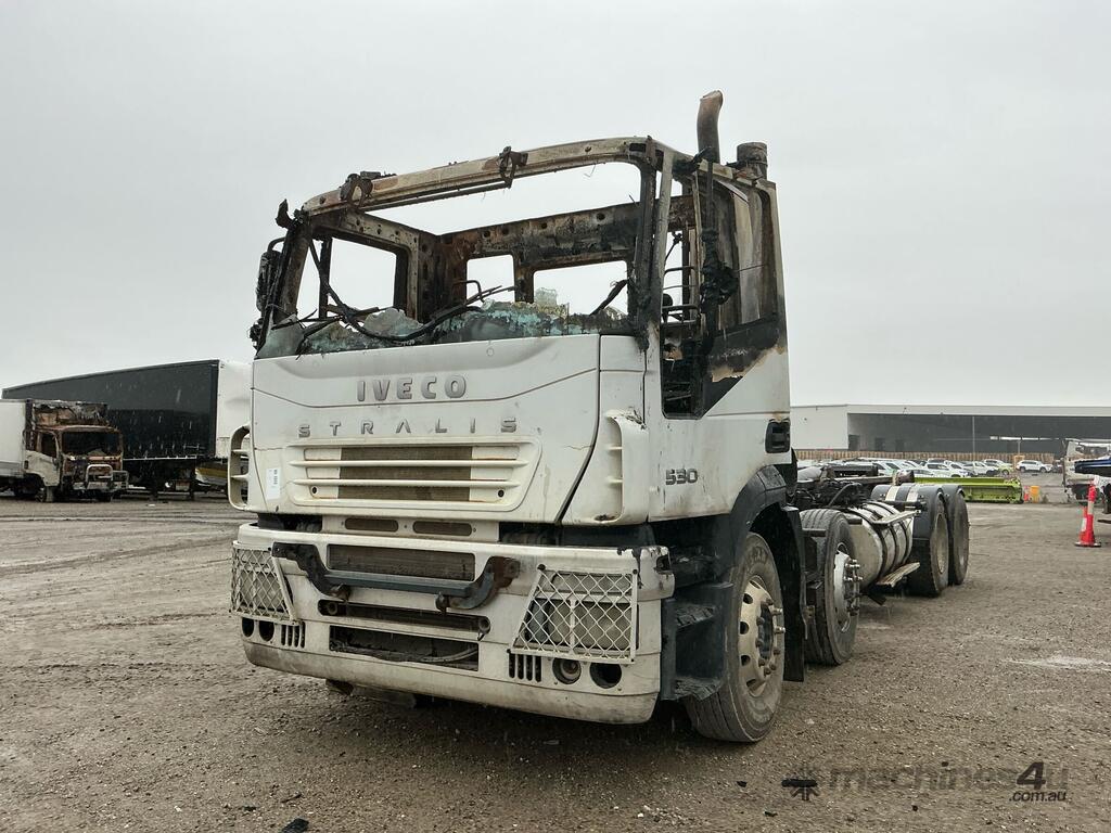 CP: CIRCA 2006,Iveco,Stralis,Hook Lift,Automatic,Diesel,Odometer not visible,Hourmeter not visible,Colour: White,Rego. No: NP(AVZ221), Unregistered VIC,VIN: 6F2SKAT006DN30019,Sold with No Plates,WOVR Status: WOVR N/A,Incident Type: Fire
