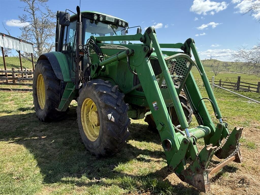 2006 JOHN DEERE 6290 TRACTOR. Serial Number L06920G422031. John Deere 741 front end loader with pallet forks, hay forks and 4 in 1 bucket. Rear tyres 580/70R38. Front tyres 16.9-28. Three point linkage. PTO. 4WD. FEL will require repairs to hitch. Located Ebor, NSW
