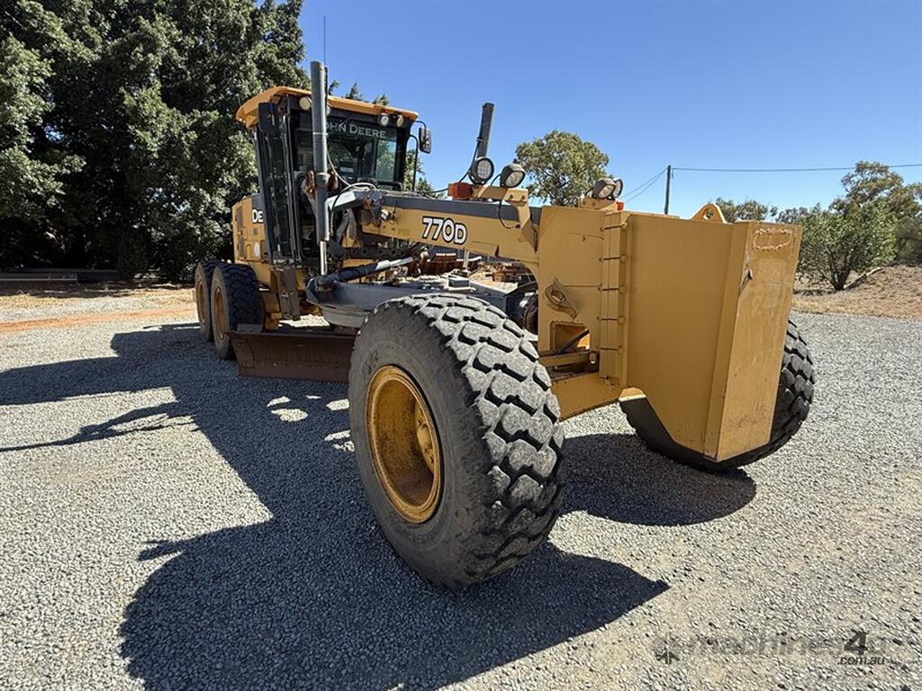 2006 JOHN DEERE 770D. Serial no. DW770DX609041. Engine no. RG6081H294652. 14ft blade. Conventional drive. Rippers. Full maintenance log. One owner majority of its life. 20,291 hours. Reverse camera. E stops. Rops and Fops. Located Nyngan, NSW