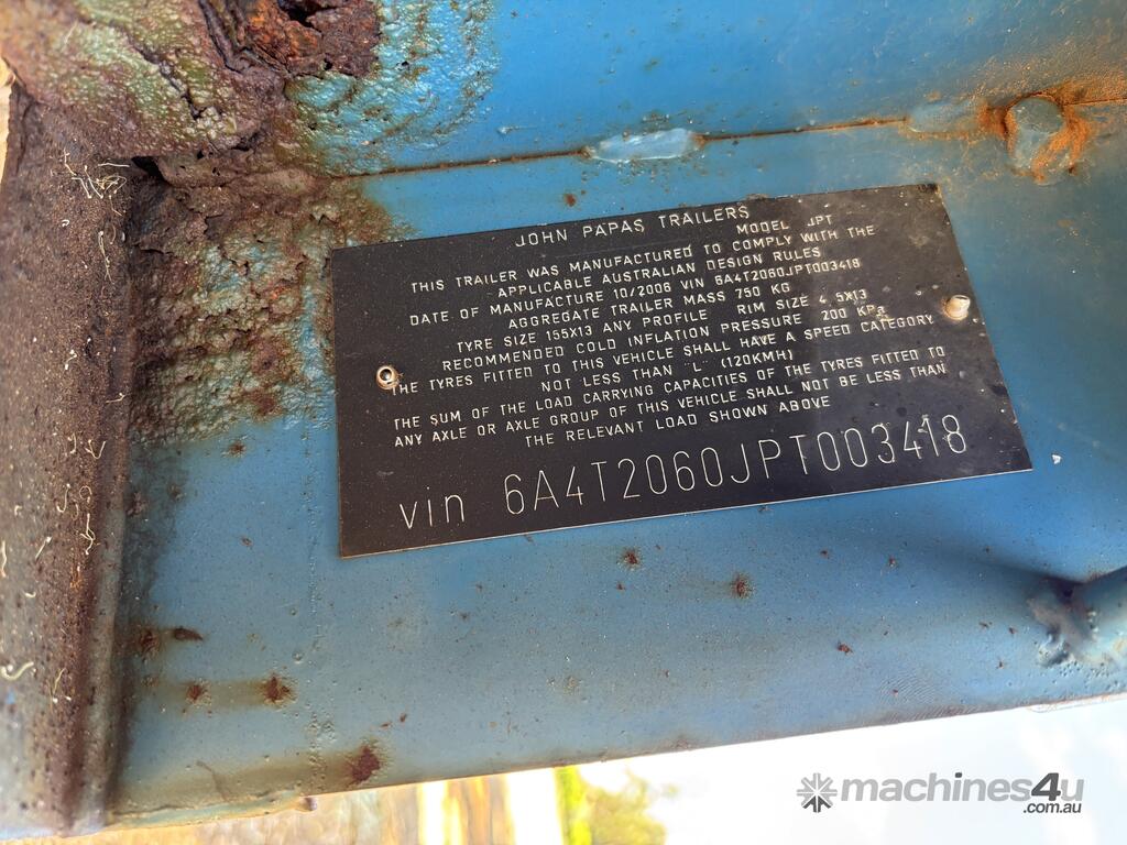CP: 06/2006,John Papas Trailers,Single Axle Box Trailer,Hubometer not visible,Unregistered,VIN: 6A4T2060JPT003418,Sold with No Plates