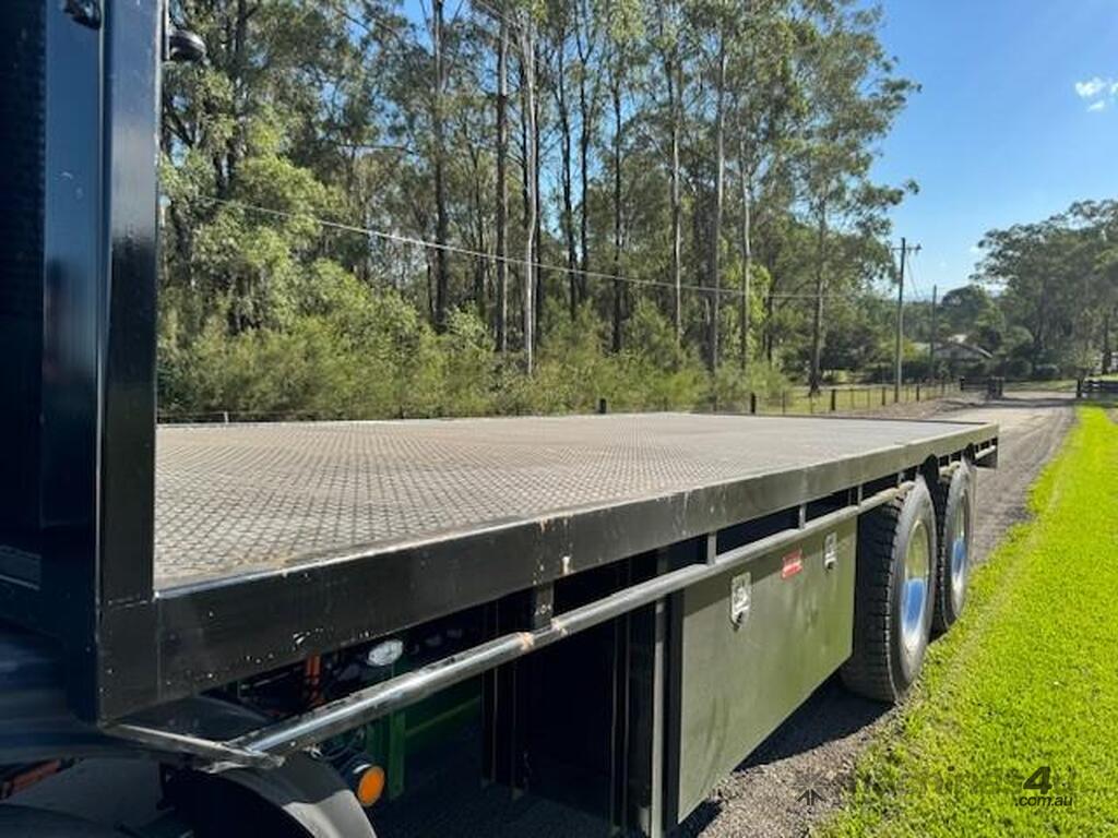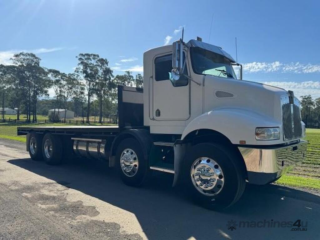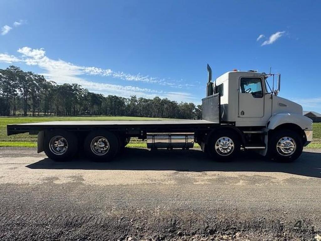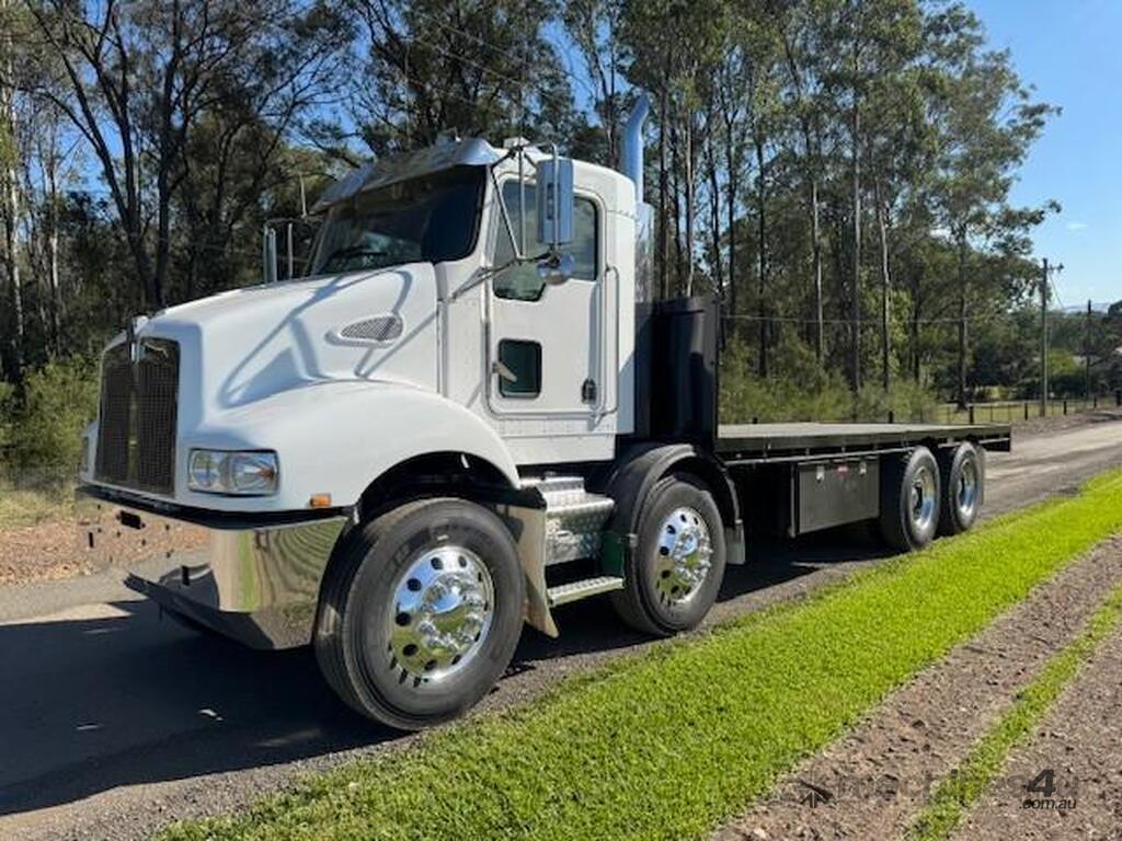 2006 Kenworth T350 day cab, 8x4, Cummins ISM 410hp, auto, only 232k kms and 6913hrs, 46T GCM, 30.1T GVM, airbag suspension, H/D 6.6m tray, comes workshop checked, serviced and complete with NSW RW for $139,000+GST