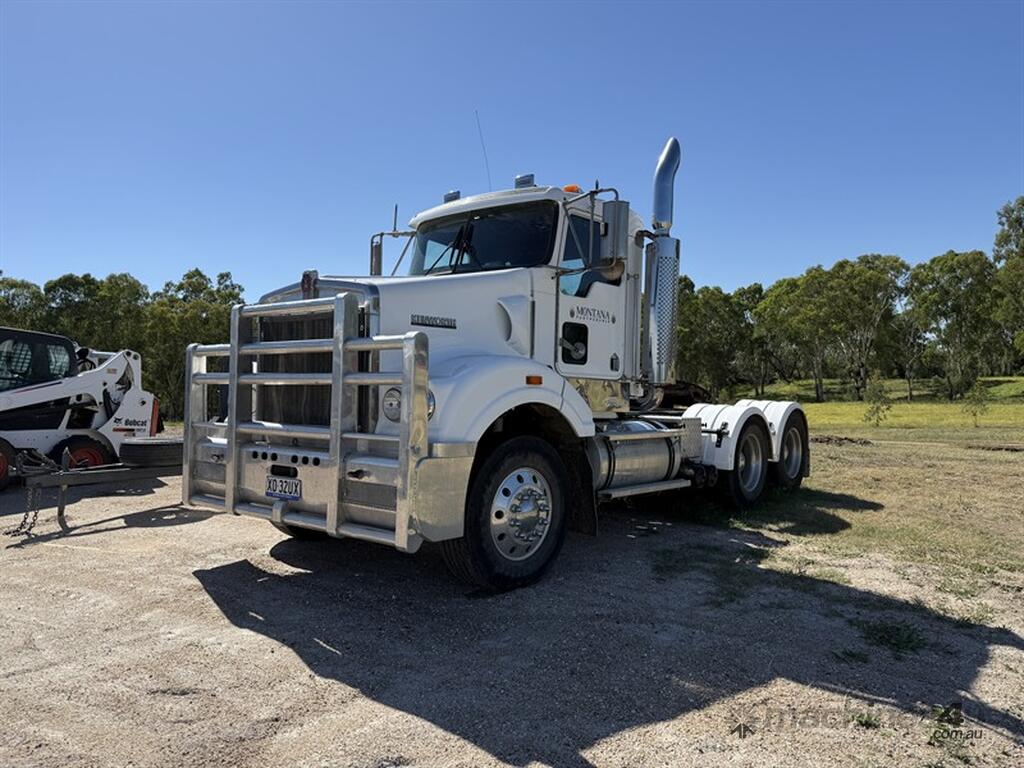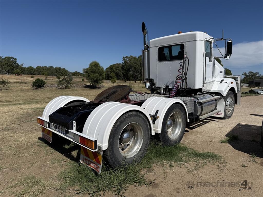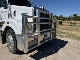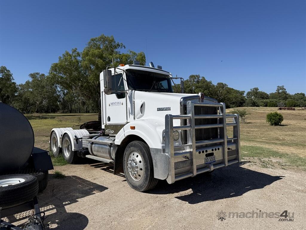 2006 Kenworth T404 SAR. GVM 26500 kg, Cat C15 pre emissions, 2 seater, airbag suspension, alloy bullbar, Kms/ hours TBA. Located in Moree NSW, available at MRE Auctions online sale.