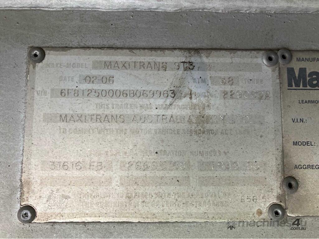 CP: 02/2006,Built: 02/2006,Maxitrans,ST3,Tri Axle Curtainside B Trailer,Hubometer not visible,Colour: White,Rego. No: NP(TB89ZX), Unregistered NSW,VIN: 6F8T250006B069963,Sold with No Plates