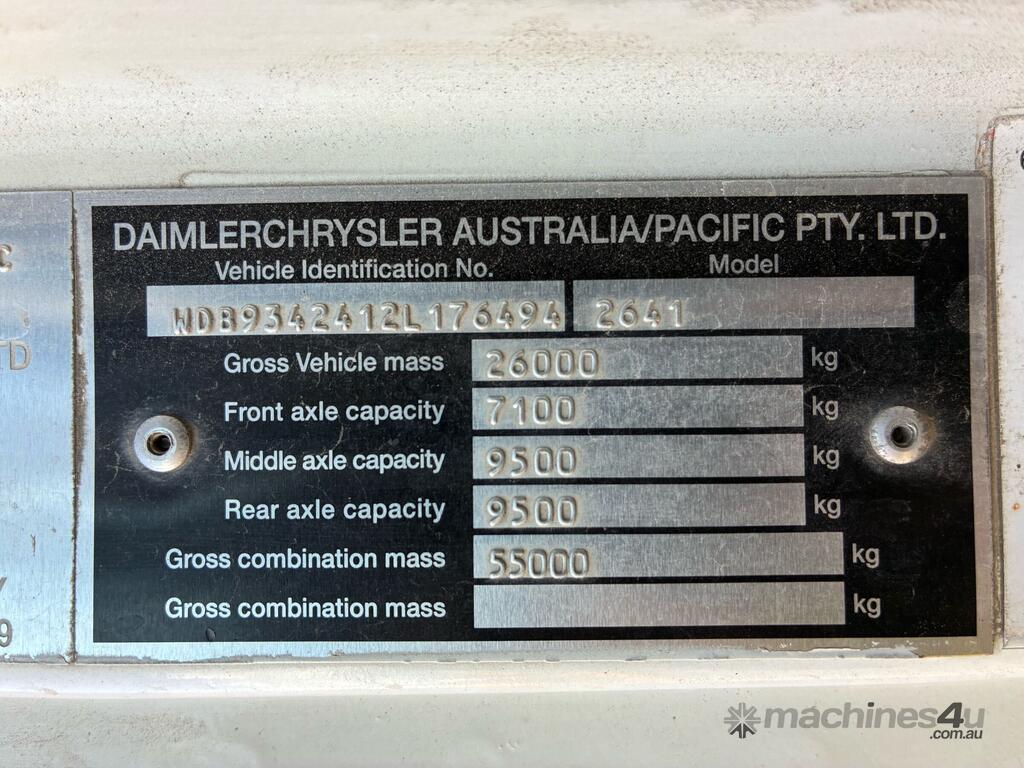 CP: 12/2006,Mercedes Benz,Actros,Tipper,Automatic,Airbag,6 Cyl,Diesel,10161 (Kms. Showing on Odometer),Hourmeter not visible,Colour: White,Rego. No: 301TKP QLD,VIN: WDB9342412L176494,Key No: 289,GVM: 26000,GCM: 55000,Sold with No Plates,Key No: 289