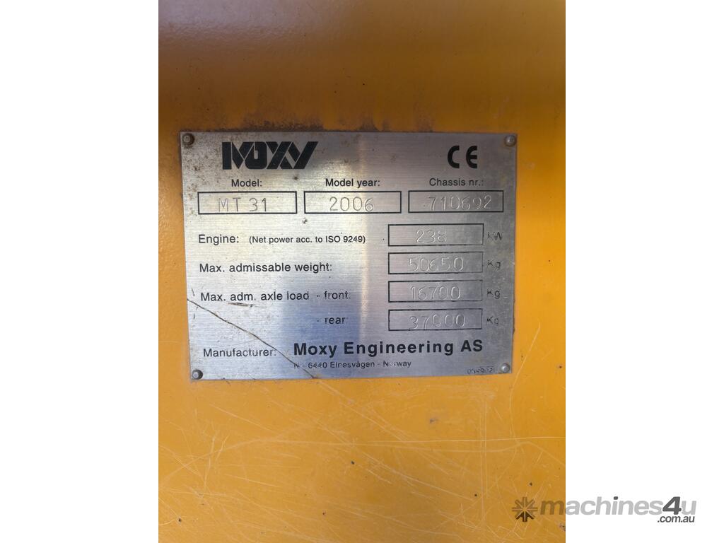 Reliable and ready for work, this 2006 Moxy MT31 Articulated Dump Truck delivers strong hauling performance with a 30-tonne payload and 9,558 hours on the clock. Built for tough conditions, the MT31 is known for excellent traction, balanced articulation, and dependable drivetrain durability across civil, mining, and quarry environments.