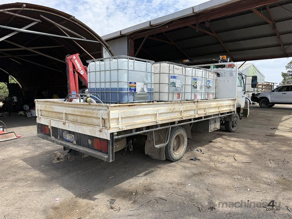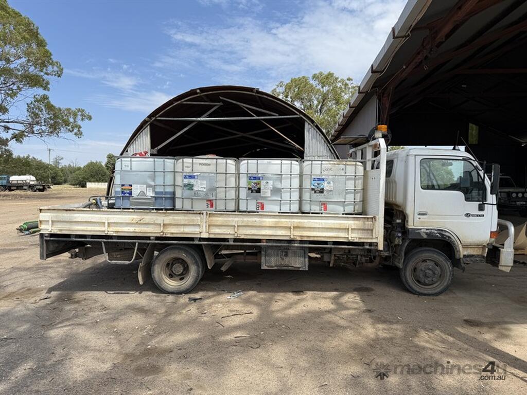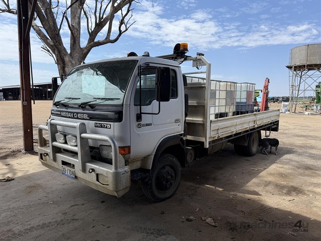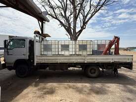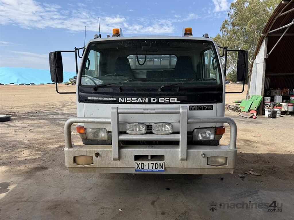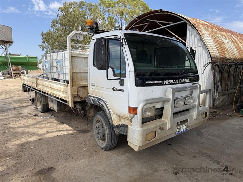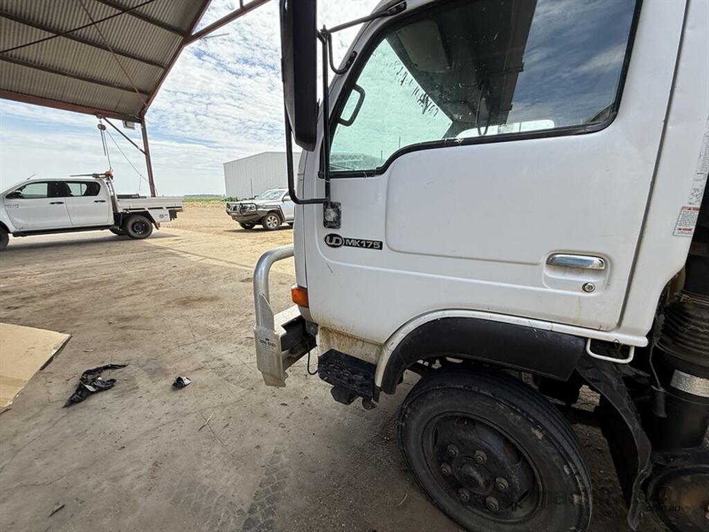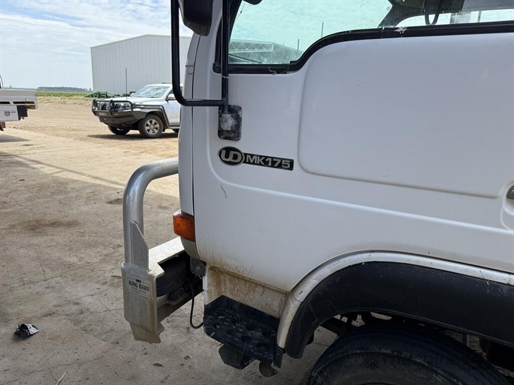 2006 UD MKA175 Truck. Approx 380,000kms, Nissan diesel motor, manual, dual rear wheels, 5m steel tray with steel floor, Maxxilift hydraulic crane, towbar, jumpstarter, oversize sign and lights, driving lights, work lights, 3 seater, GVM 9T. Rego expired on 31.01.2026. Water shuttles and pump to be removed. Located at Pallamallawa NSW, available at MRE Auctions online sale.