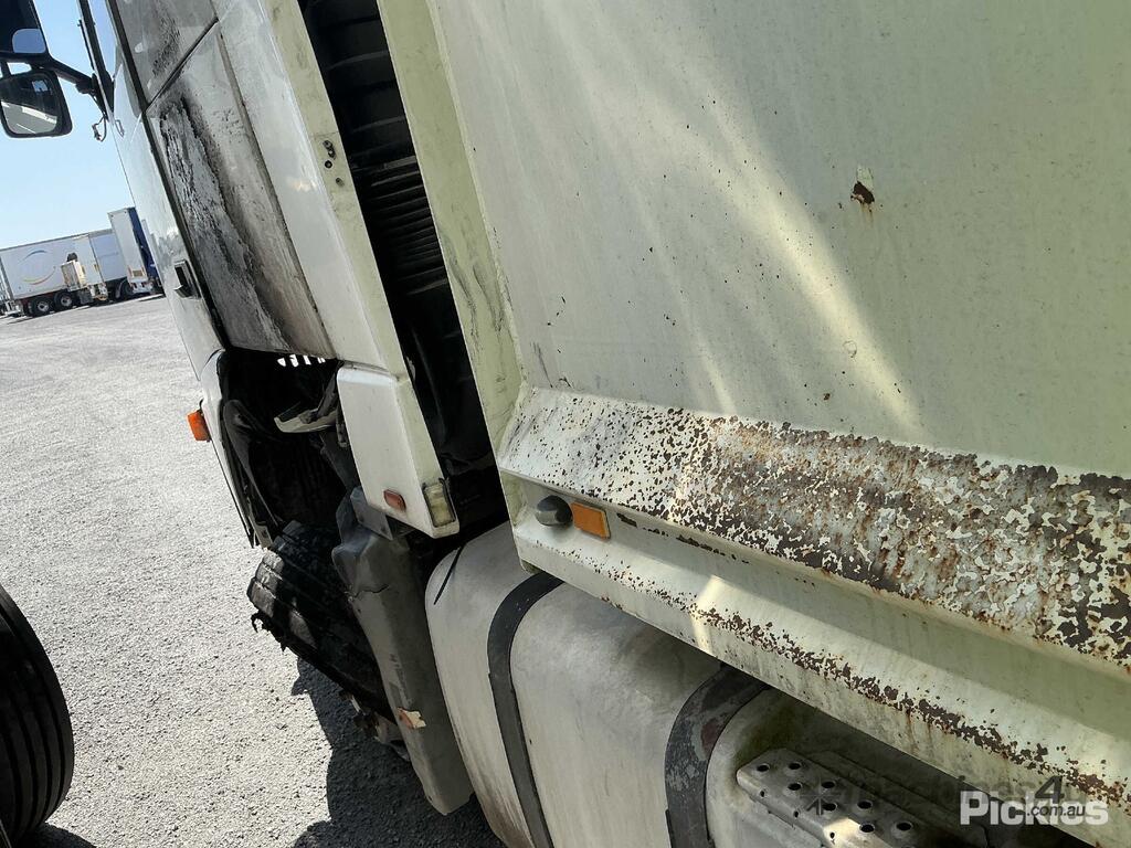 CP: 04/2006,Volvo,FH MK2,Tipper,Automatic,Airbag ,6 Cyl,Diesel,Turbo,Odometer not visible,Hourmeter not visible,Colour: White,Rego. No: NP(XO23LG), Unregistered NSW,VIN: YV5AS50D36D127995,Length: 7 m,GVM: 27500,Sold with No Plates,WOVR Status: Repairable Write-Off,Incident Type: Impact,Fire